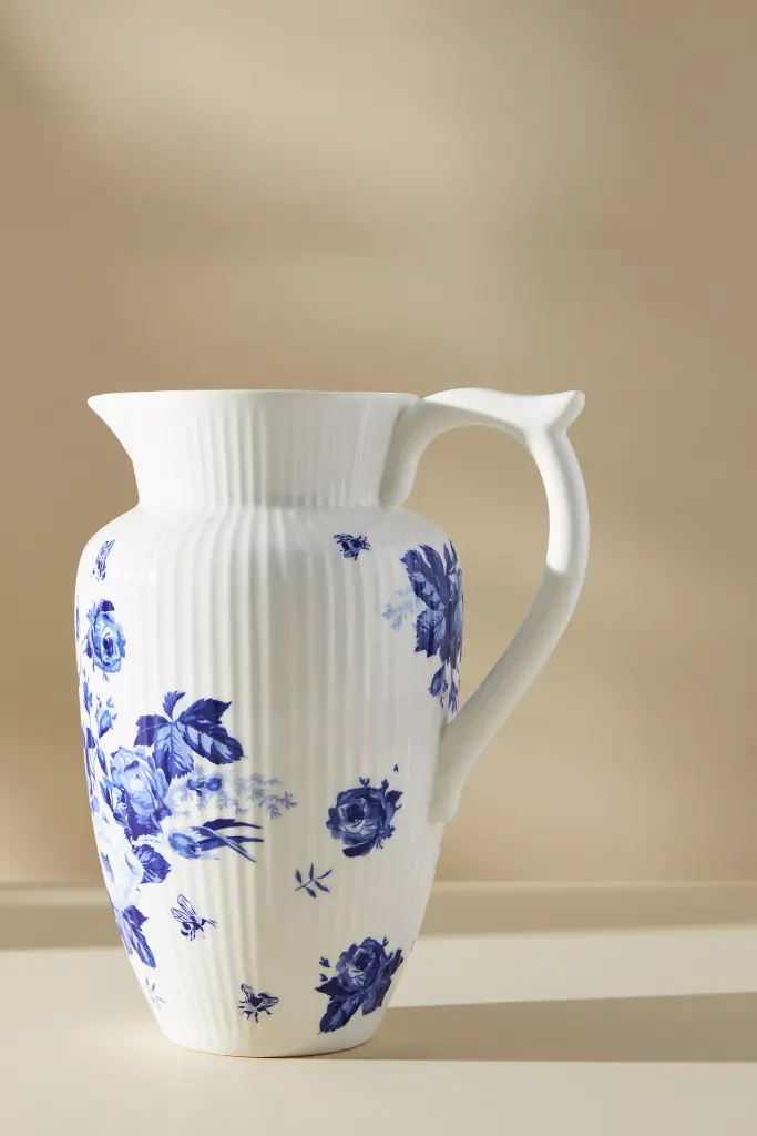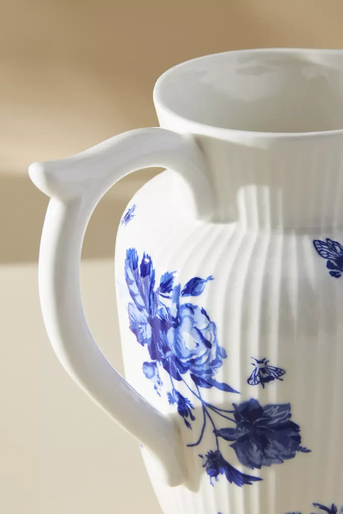 Discover the entire Abi Dinnerware Collection by AnthroLiving. Inspired by traditional Dutch Delftware and French toile fabrics, this tableware boasts motifs of florals and bees that were handpainted by print designers, and then carefully applied to softly ribbed stoneware. The high-caliber material results in a brighter white hue, allowing the stunning blue tones to pop in contrast. As versatile as it is beautiful, this high-quality china lends any table an elevated feel - perfect for both everyday use and special occasions.