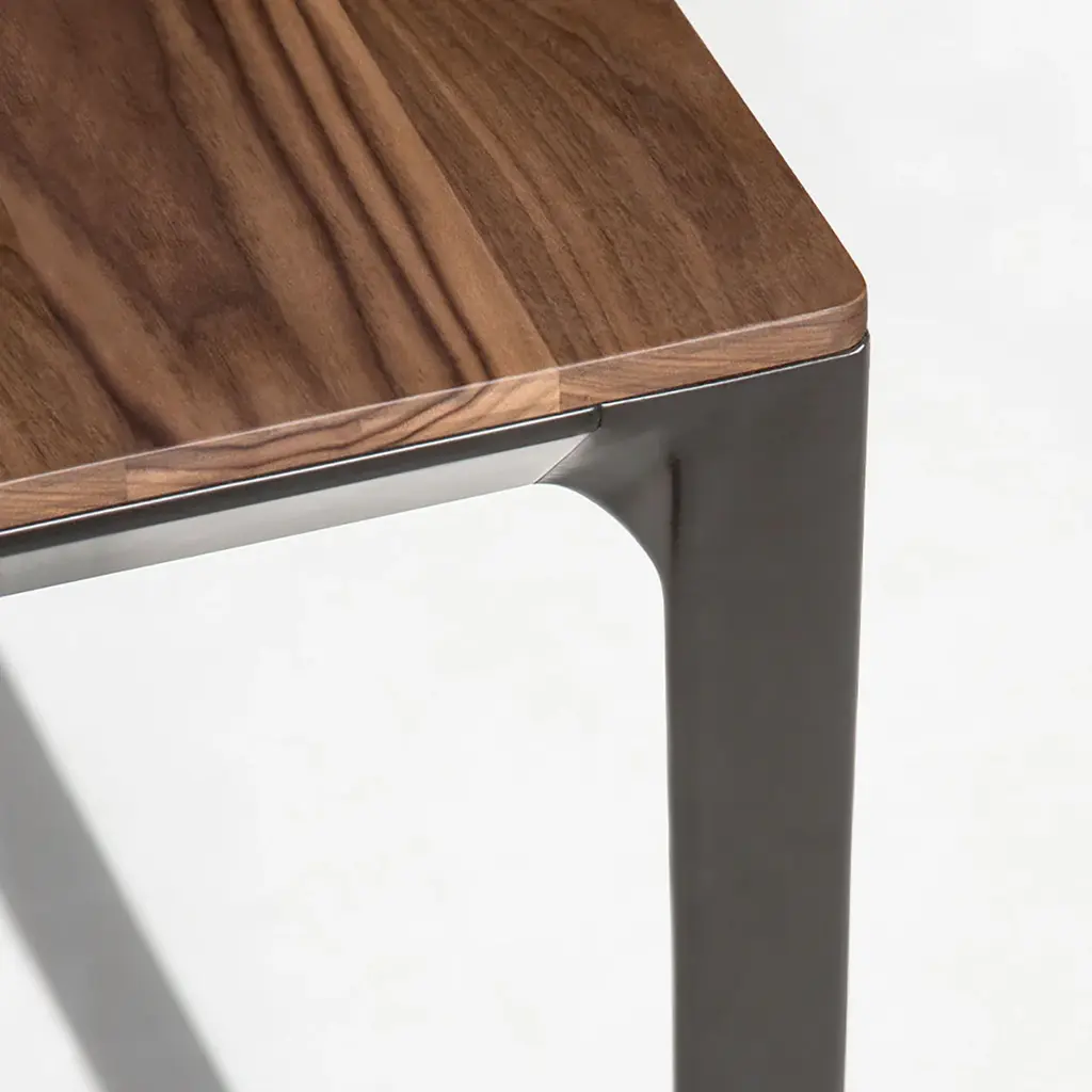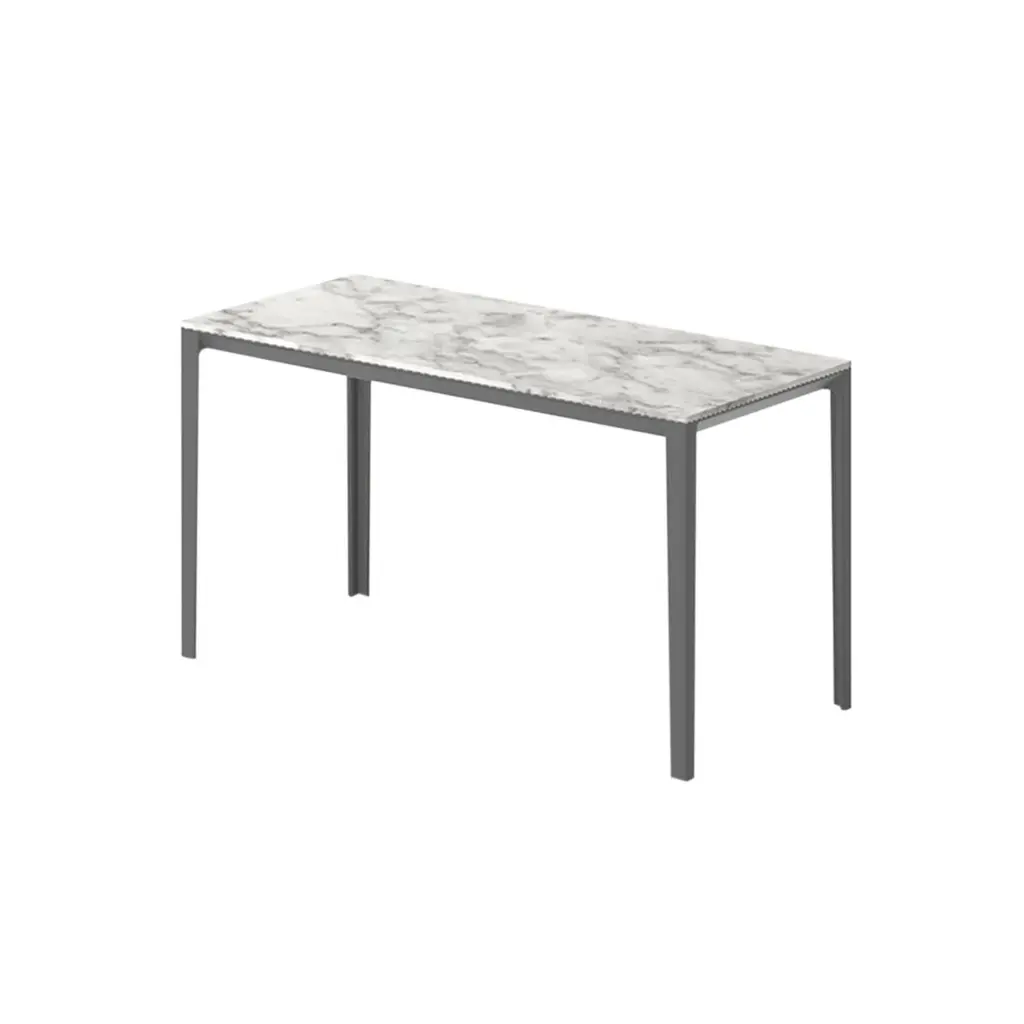 A console that doesn't overpower its surroundings, Able lends a sense of visual lightness to and sleek finesse to a room. Available in 4 sizes, there's one to fit every space. Complementing the beveled-edge tabletop, the curving frame is fashioned in cast aluminum with a subtle graphite finish. Remarkably lightweight but impressively sturdy, the console is available with its top surface in a choice of wood, marble and Polaris laminate.