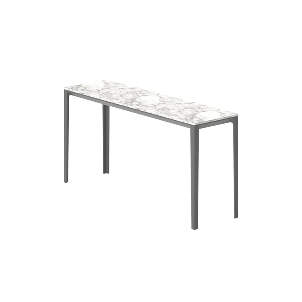 A console that doesn't overpower its surroundings, Able lends a sense of visual lightness to and sleek finesse to a room. Available in 4 sizes, there's one to fit every space. Complementing the beveled-edge tabletop, the curving frame is fashioned in cast aluminum with a subtle graphite finish. Remarkably lightweight but impressively sturdy, the console is available with its top surface in a choice of wood, marble and Polaris laminate.