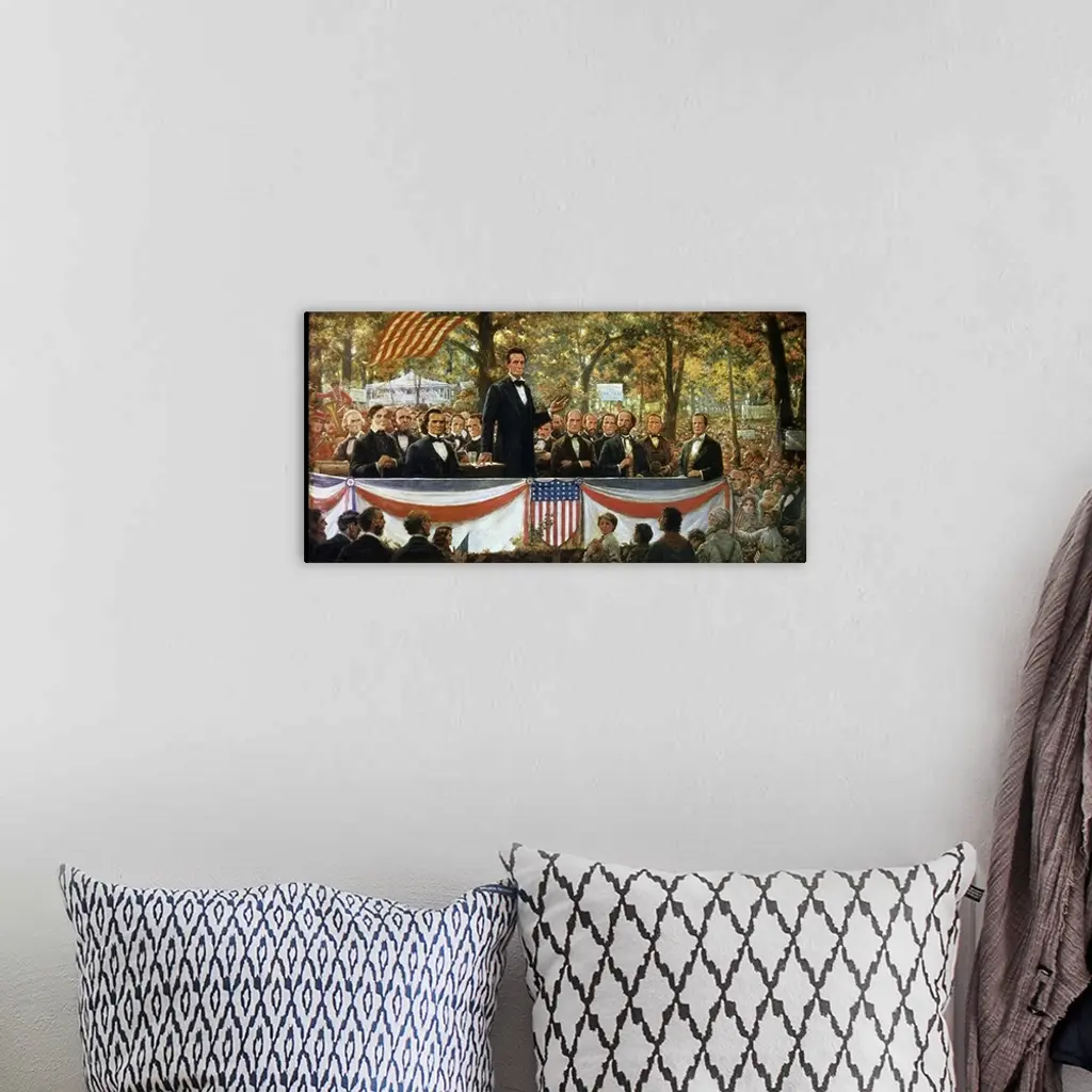 XTD82767 Abraham Lincoln and Stephen A. Douglas debating at Charleston, Illinois on 18th September 1858, 1918 (oil on canvas) by Root, Robert Marshall (1863-1937); Private Collection; (add. info.: Lincoln (1809-65) 16th President of the United States of America; Douglas (1813-61)); American, out of copyright