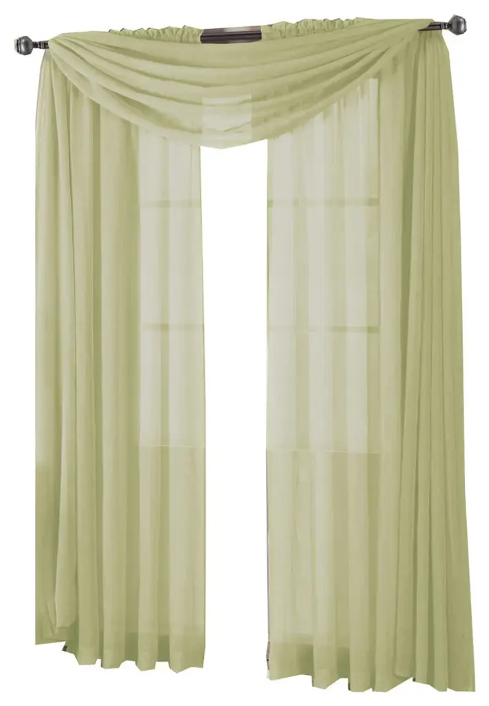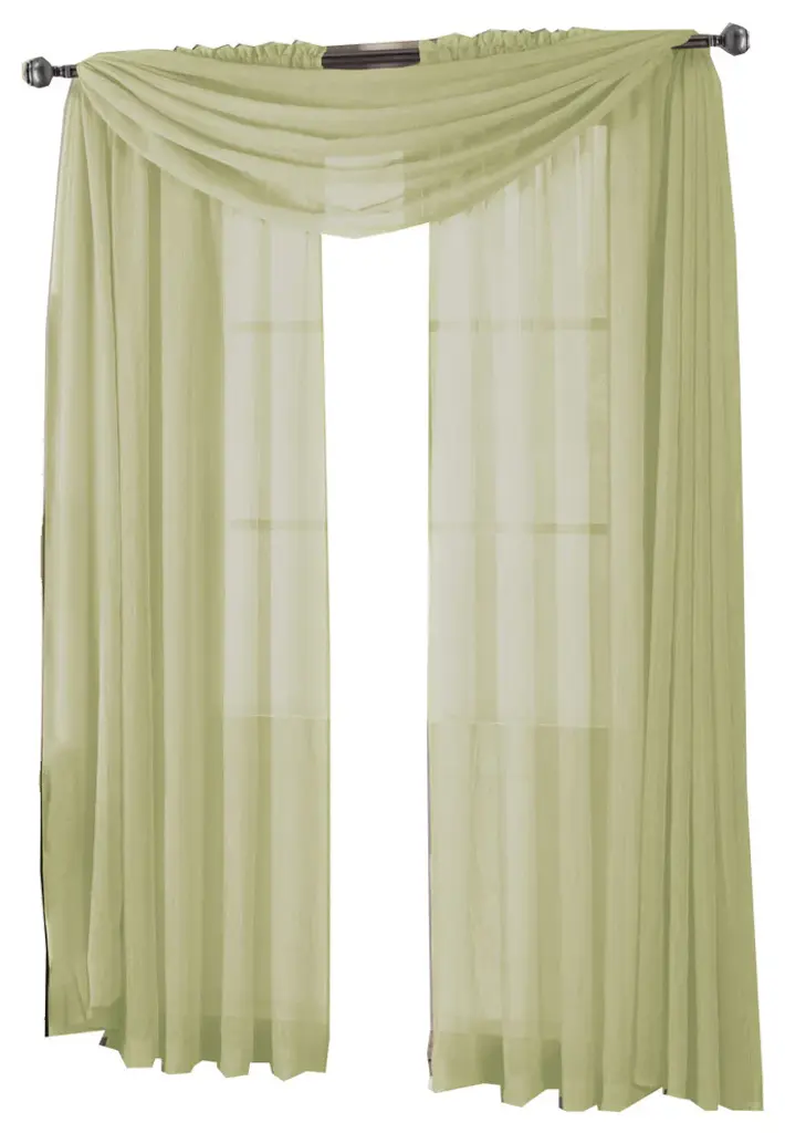 Add an opulent and deluxe look to almost any room in the house with this Grommet Sheer Curtain Panels by Abripedic. Opt from the seven delightful different colors available that perfectly complements any room. Have an informal appearance with the panels only or add more elegance with one or more waterfall valances. Add the valance scarf to complete the look. See-through and delicate, the Abripedic Grommet Crushed Sheer Curtain Panel looks dreamy blowing in the breeze. These long, sheer curtains can be hung alone or under solid drapes. •100% polyester Sheer Curtains•Sold individually (Not a set, each package contains only one panel or one valance)•Allows light to softly enter the room•Crushed sheer creates fresh & rich atmosphere•Ability to mix and match different color valances with other colored panels •Machine-washable Easy CareAvailable Sizes Include: (Not a set, Sold as single panel or single valance)•24 " wide x 24 " long each Valance•50 " wide x 63 " long each Panel•50 " wide x 84 " long each Panel•50 " wide x 96 " long each Panel•50 " wide x 108 " long each Panel