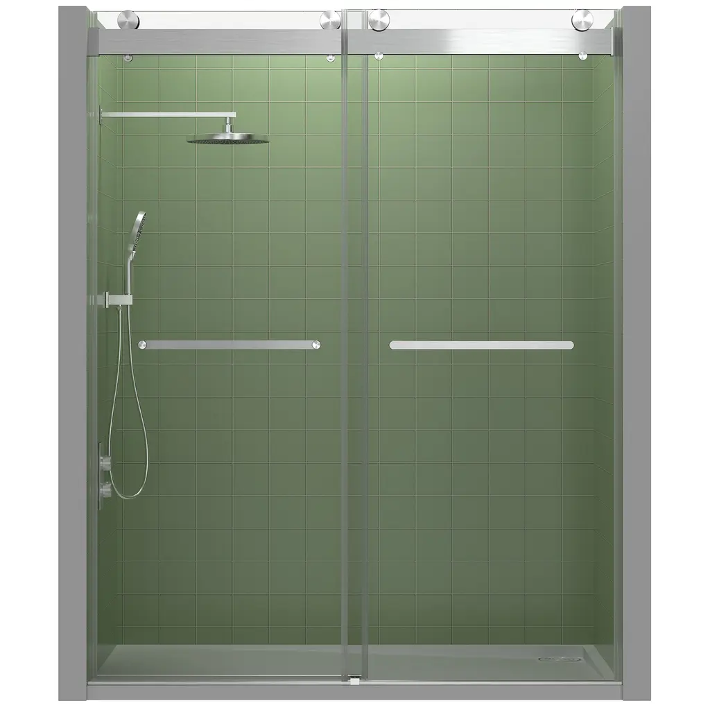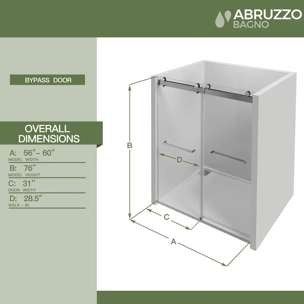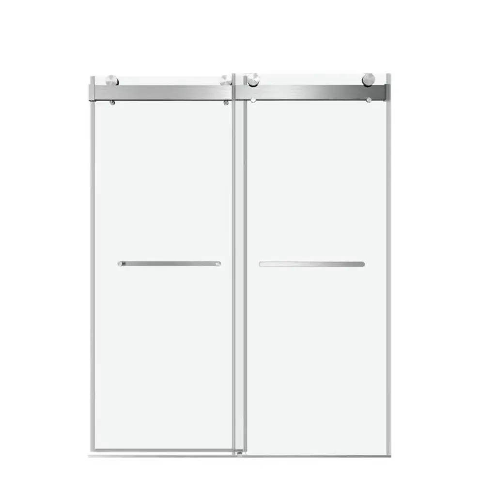 Abruzzo 56 - 60" W X 76" Double Sliding Frameless Soft-Close Shower Door With 3/8" Thick Tempered Easy-Clean Coating Glass - 60*76" - Brushed Nickel