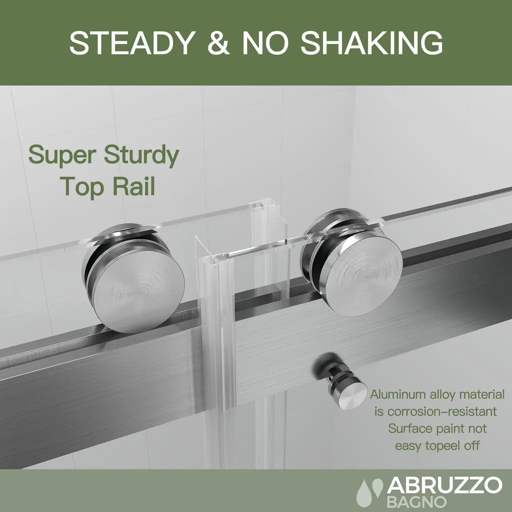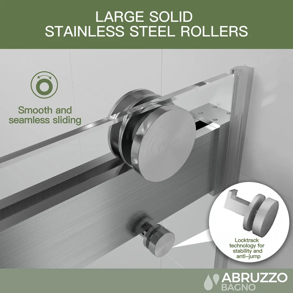 The Abruzzo shower door provides smooth gliding action with its sleek rollers, without the significant framing of a typical bypass shower door. Premium hardware finishes elegantly dress high-quality tempered glass while towering glass doors provide unobstructed views. This door delivers the perfect combination of a contemporary look and superior functionality. Choose Abruzzo for the ultimate solution for your bathroom.