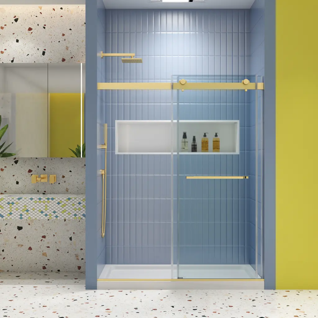 Upgrade your shower experience with the ABRUZZO premium soft-close single sliding shower door. Designed for smooth operation, durability, and modern aesthetics, this door features 1/4" (6mm) tempered glass with an Easy-Clean coating, a reversible installation system, and a robust anti-water seal. Combining functionality, style, and reliability, it transforms your bathroom into a sleek, spa-like retreat. Available in Matte Black, Chrome, Brushed Nickel, and Gold finishes.