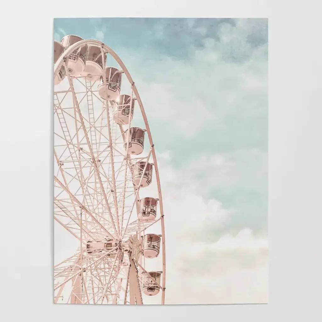 Abstract Amusement Park Toy Ride Pink Blue Collage,1pc, Each 24 X 30