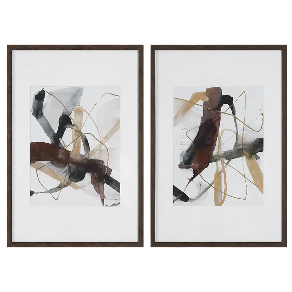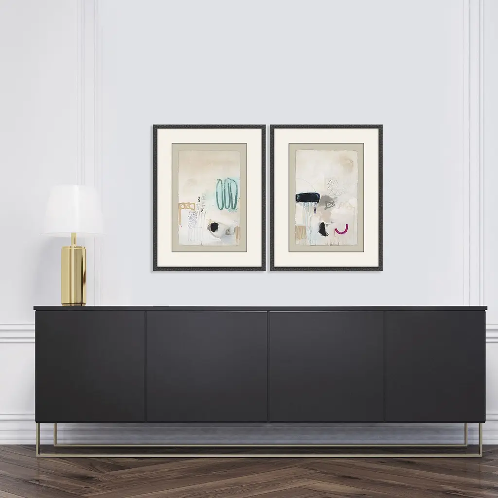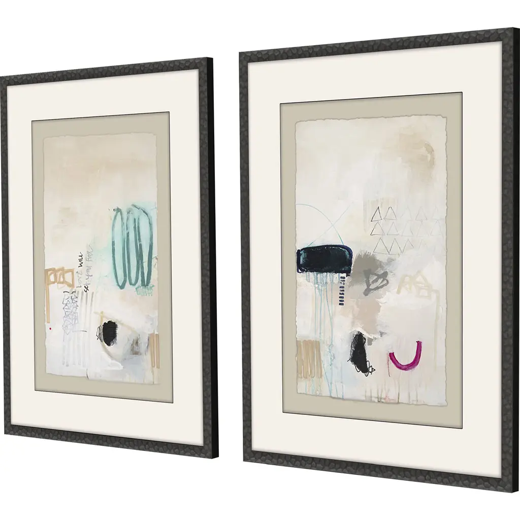 Abstract Black And Beige And Pink And Turquoise Framed Art