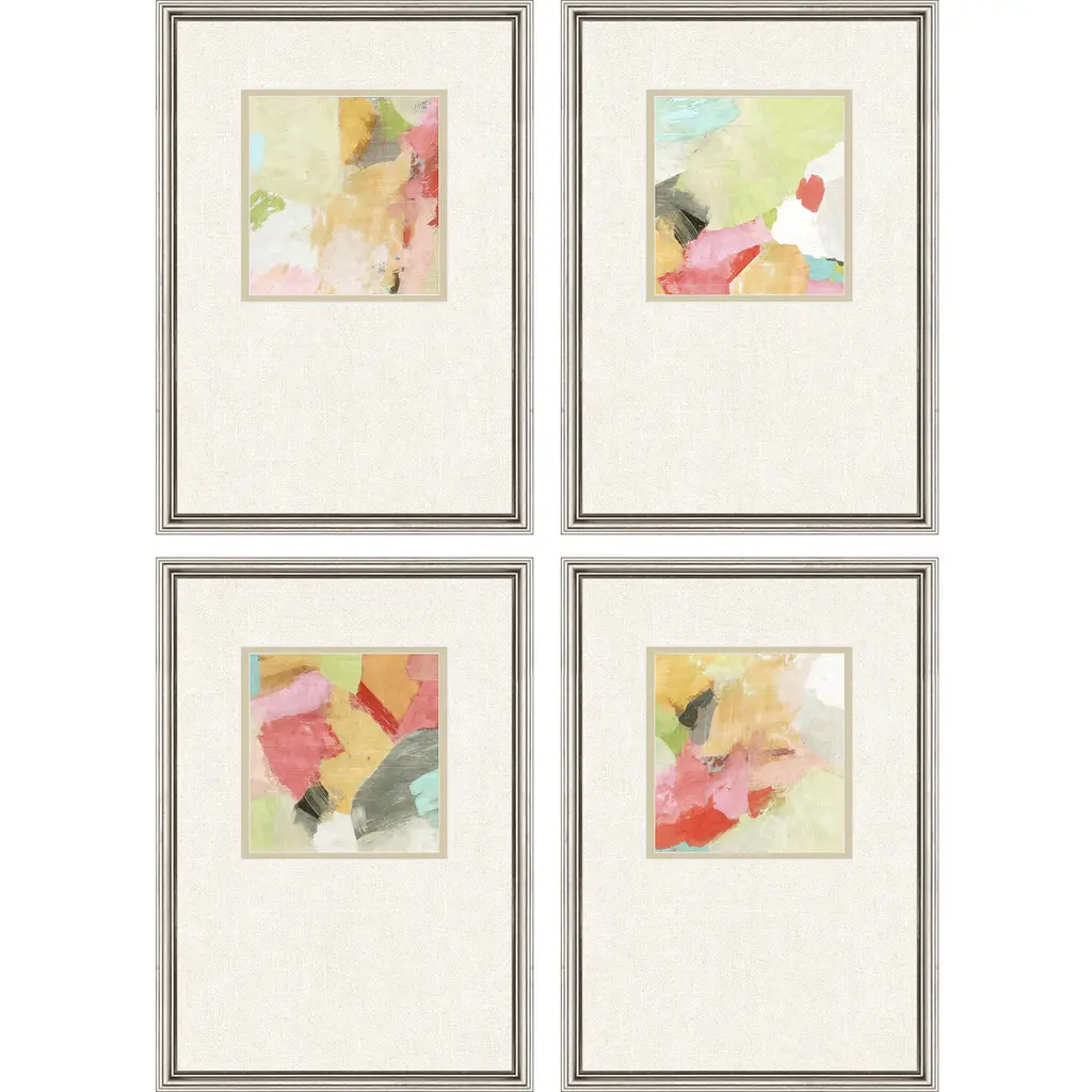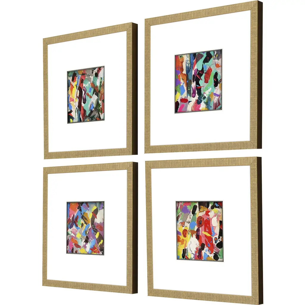Brilliant colors collide in a dynamic display. Featuring raised white matting and framed in a ribbed moulding in a distressed gold finish.