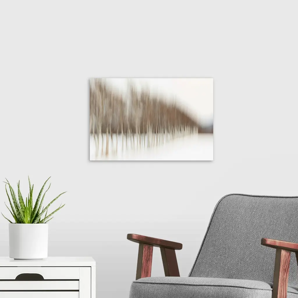 Abstract blur of birch trees in rural Japan wall art for home and office decor. Discover canvas art prints, photos, mural, big canvas art and framed wall art in GreatBigCanvas.com's varied collections.