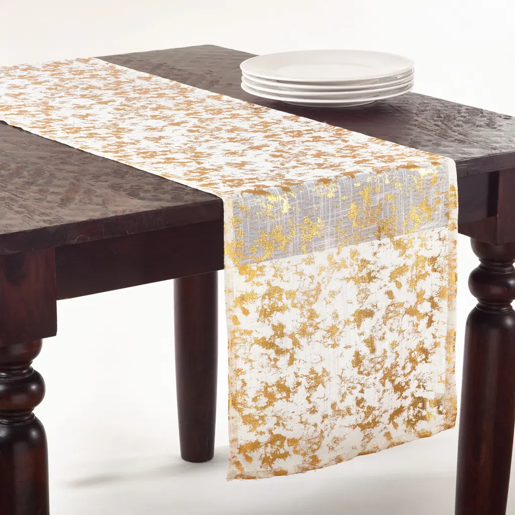 Elevate your dining experience with Saro Lifestyle's Brushed Foil Design Runner. Measuring 72 inches in length, this contemporary runner boasts a sophisticated abstract pattern with foil accents that adds a touch of modern elegance to your table. Constructed with durable polyester, this runner is easy to spot-clean and ensures longevity.Features:Other sections: