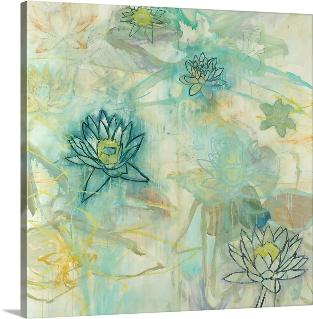 Abstract Colorfield Daisies Cool Colors Wall Plaque Art, 12x12