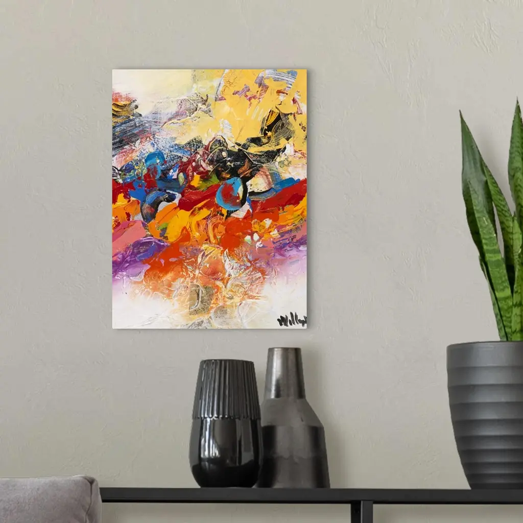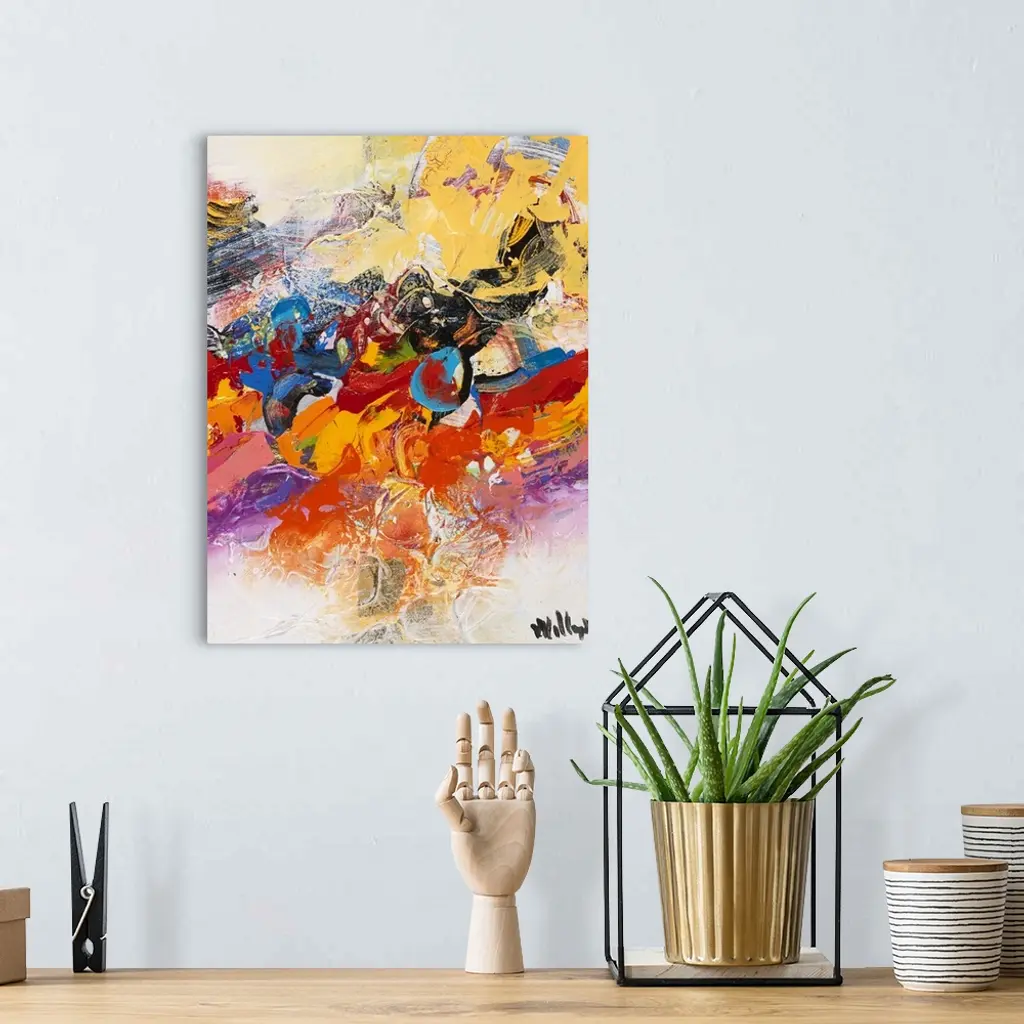 Wild, vivid abstract full of movement, with bold brushstrokes and contrasting colors.