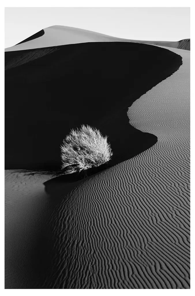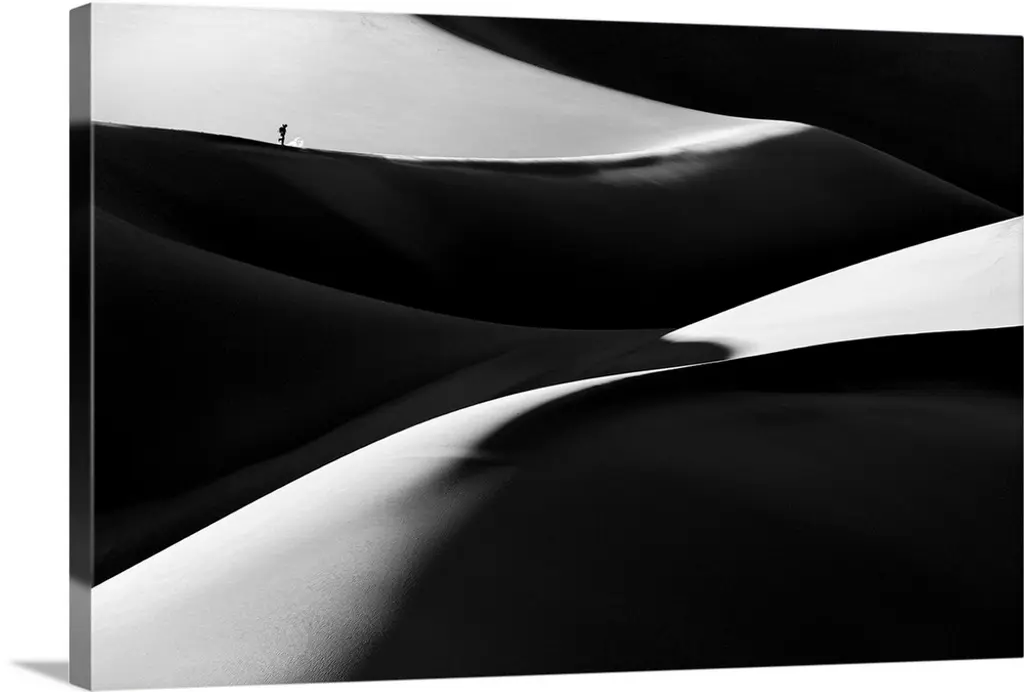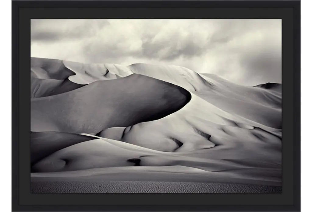 Designed by us and available only at One Kings Lane: This high-contrast photograph of desert dunes is reproduced on matte paper, straight cut, and floated on a black mat. Displayed in a simple frame, this piece arrives ready to hang.