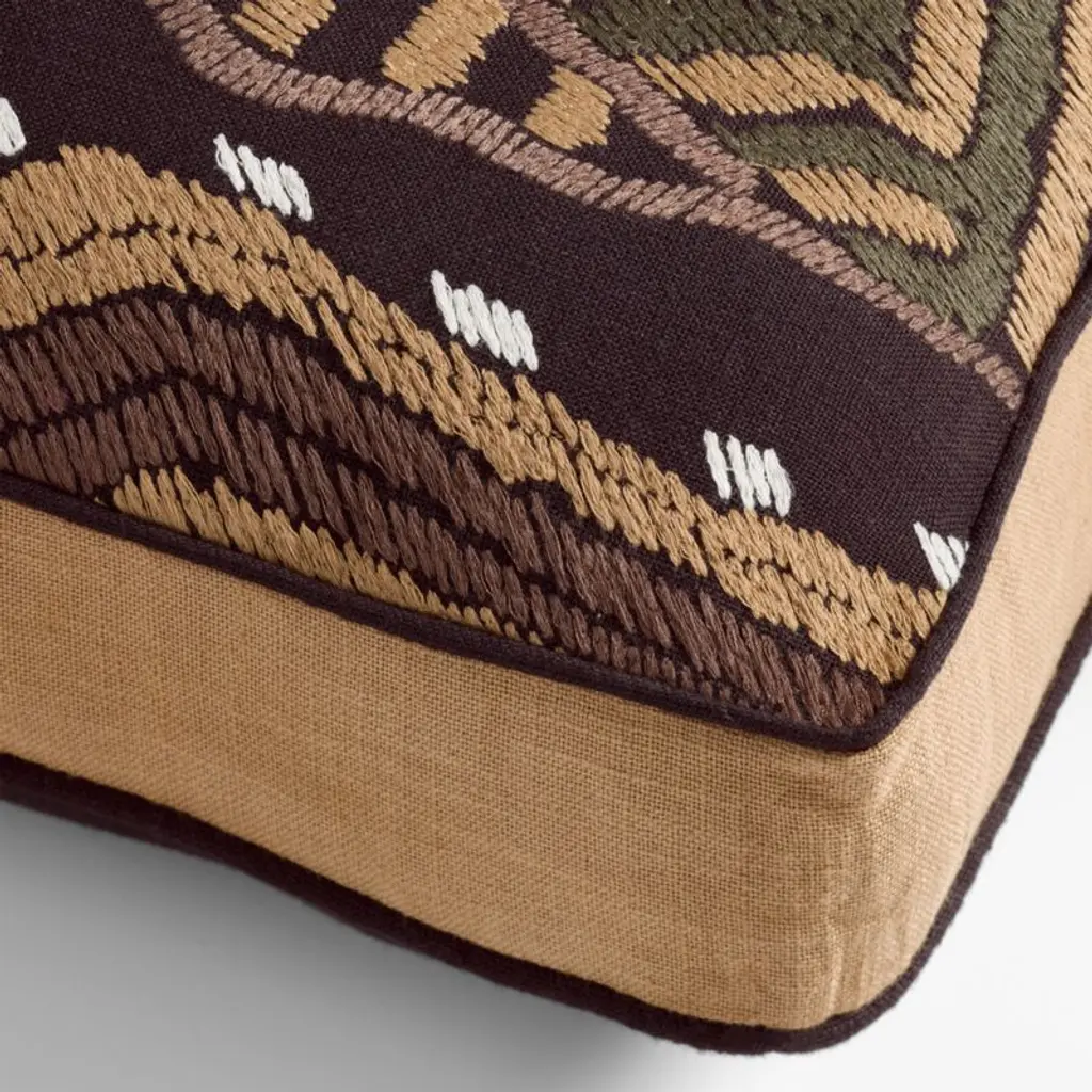 Flourishing abstract forms give this throw pillow rich texture and plenty of character. The embroidery evokes fascinating botanicals, all stitched in a warm hue on deep brown. Outlined in matching piping, the lumbar cushion gets its satisfying structure from a contrasting ivory gusset and instantly adds a collected-over-time feel to your pillow assortment.Introducing The Collected Home. Our exclusive new collaboration with interior designer Jeremiah Brent is rich with bespoke details and bold individuality.