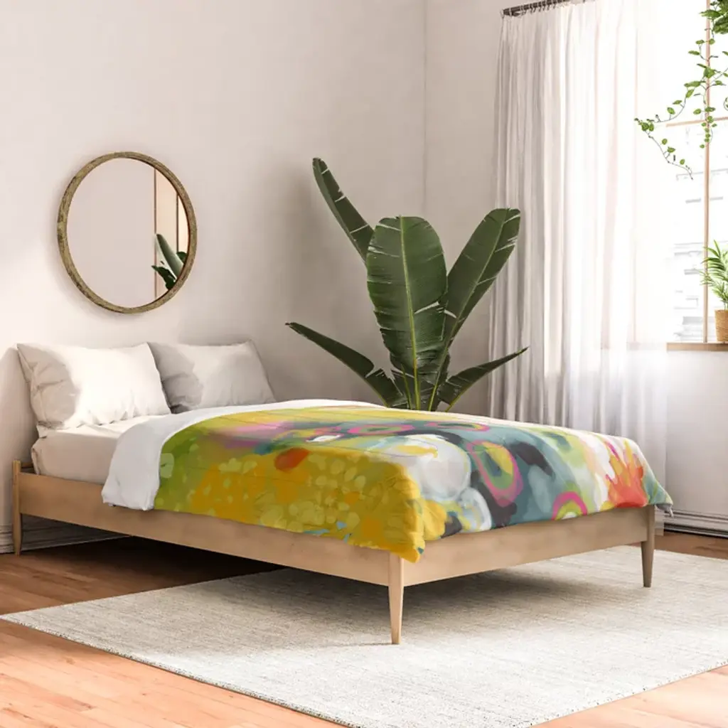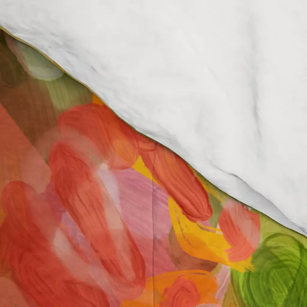 Abstract Floral Art In Yellow Green And Rose Magenta Colors Comforter