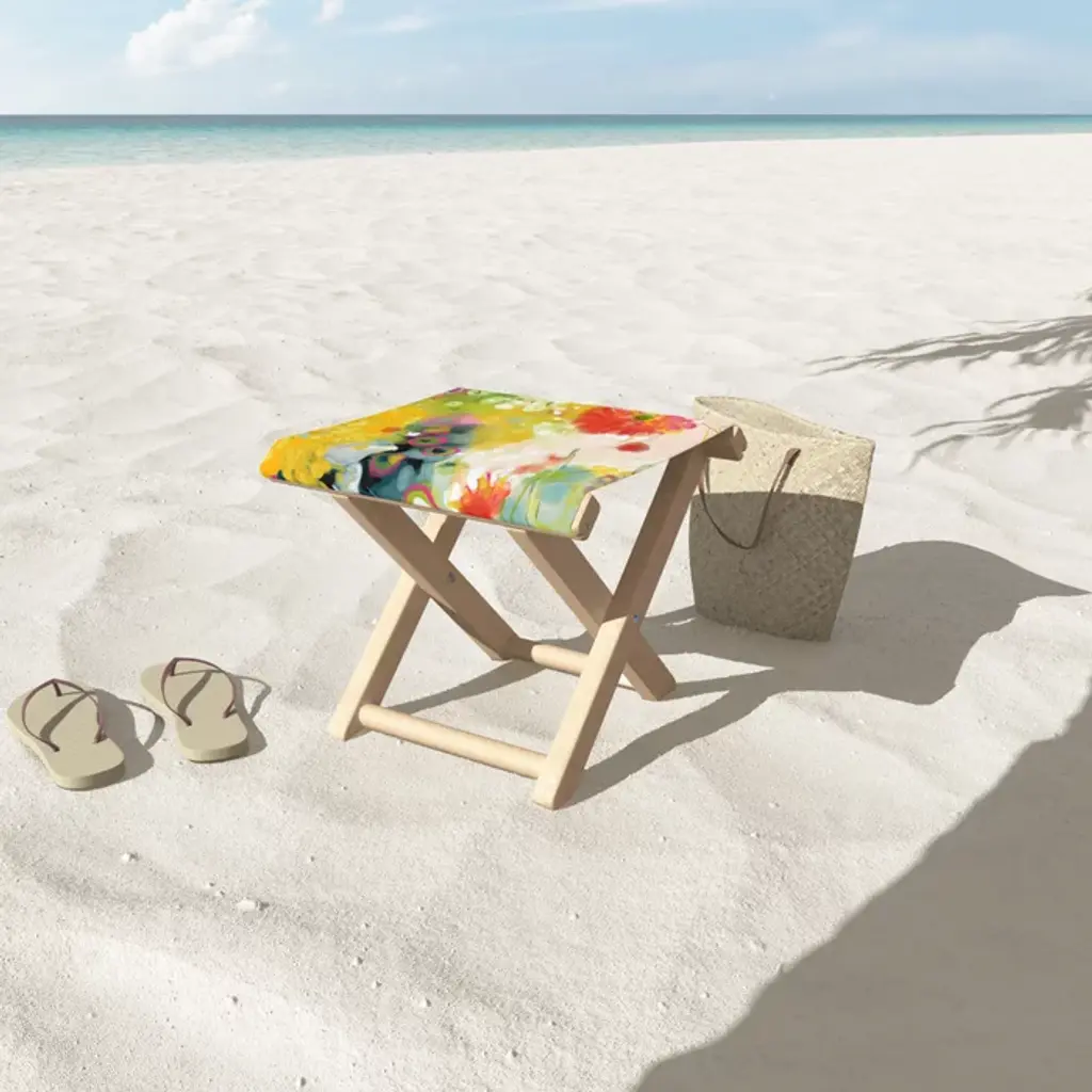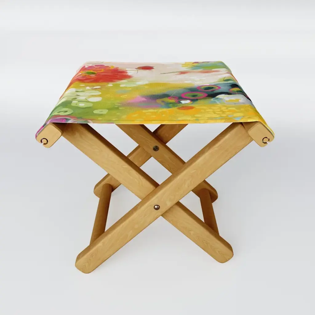 Abstract Floral Art In Yellow Green And Rose Magenta Colors Folding Stool