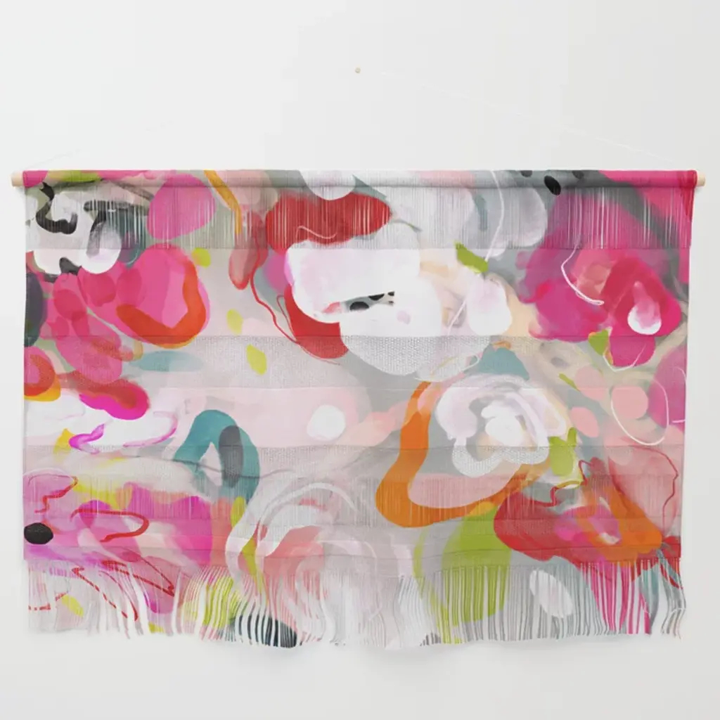 Abstract Floral Art In Yellow Green And Rose Magenta Colors Wall Hanging