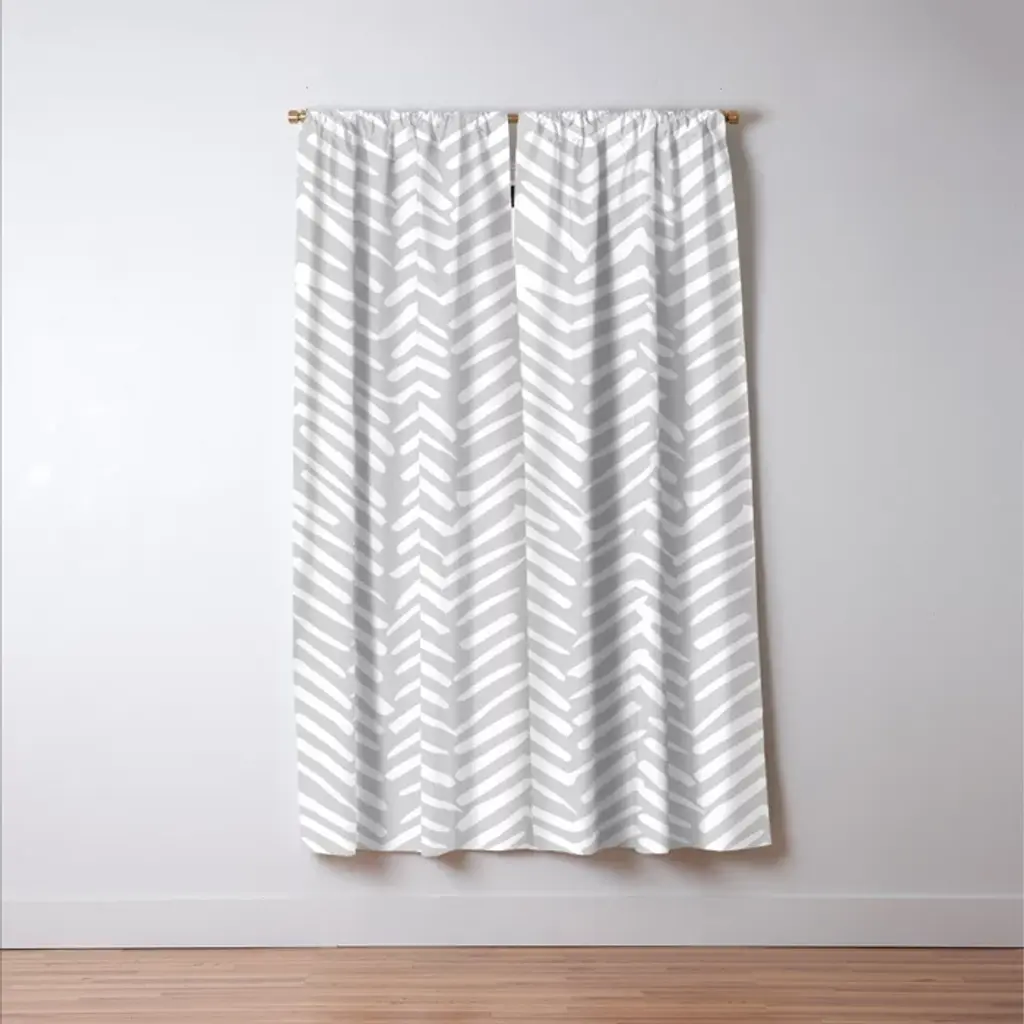 Abstract Herringbone, Striped Pattern, Gray And White Curtain