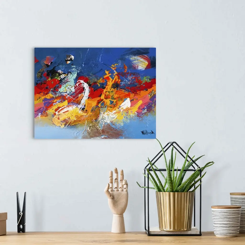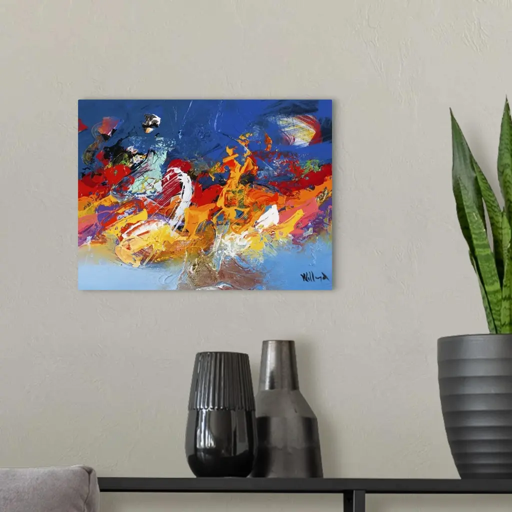 Wild, vivid abstract full of movement, with bold brushstrokes and contrasting colors.