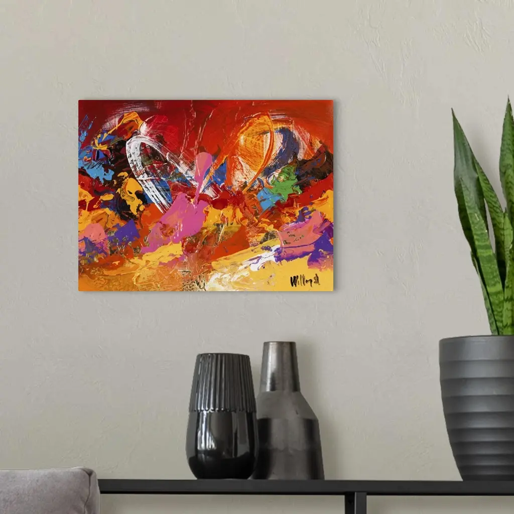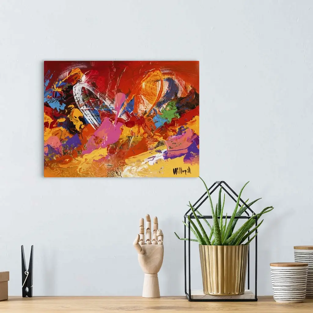 Wild, vivid abstract full of movement, with bold brushstrokes and contrasting colors.