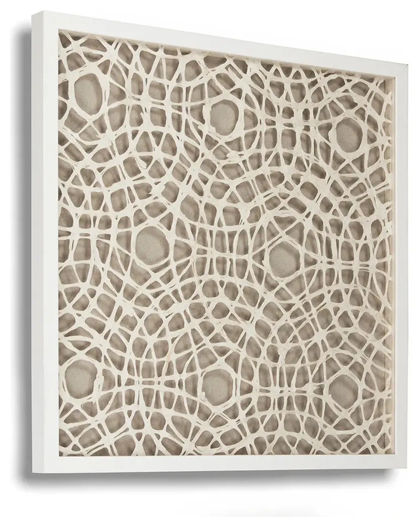 Overlapping circle paper lines against light brown background. Framed in white fir wood.Zentique combines unique designs with high-end materials to bring you the very best home decor in the business.When you order a product engineered and manufactured by Zentique, you''re guaranteed to get a product that is built to last for years and years to come. This product will come in ship-safe packaging materials and will be sure to impress!DimensionsLength: 30 in.Width: 1.75 in.Height: 30 in.Some assembly required: No