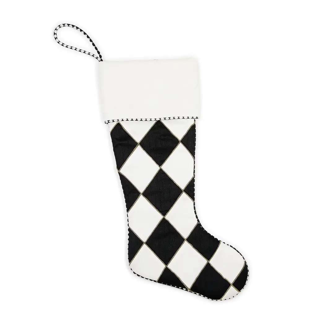 Bring a fresh, modern flair to your holiday display with this needlepoint stocking. Featuring a geometric pattern in green and navy, it's made from a cotton/polyester blend for lasting quality and finished with a plush velvet back.
