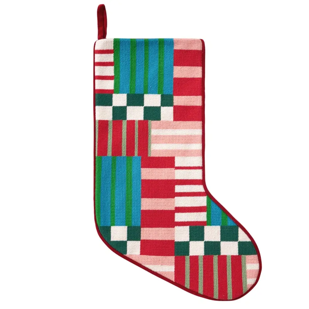 Add a pop of color to your mantel with this vibrant needlepoint stocking. Featuring a bold pink, red, and orange gingham pattern, it's crafted from polyester yarns for lasting durability. The plush cotton velvet back adds a soft, luxurious touch.