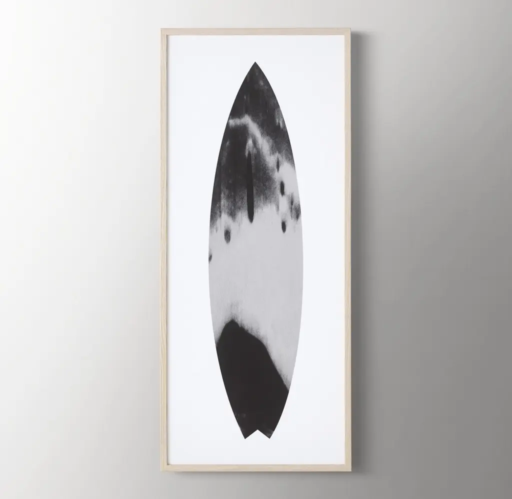 Rendered in shades of black, white and grey, our oversized surfboards play with light and shadow, surface and depth, while evoking the feel of reading, riding and rolling with the waves.