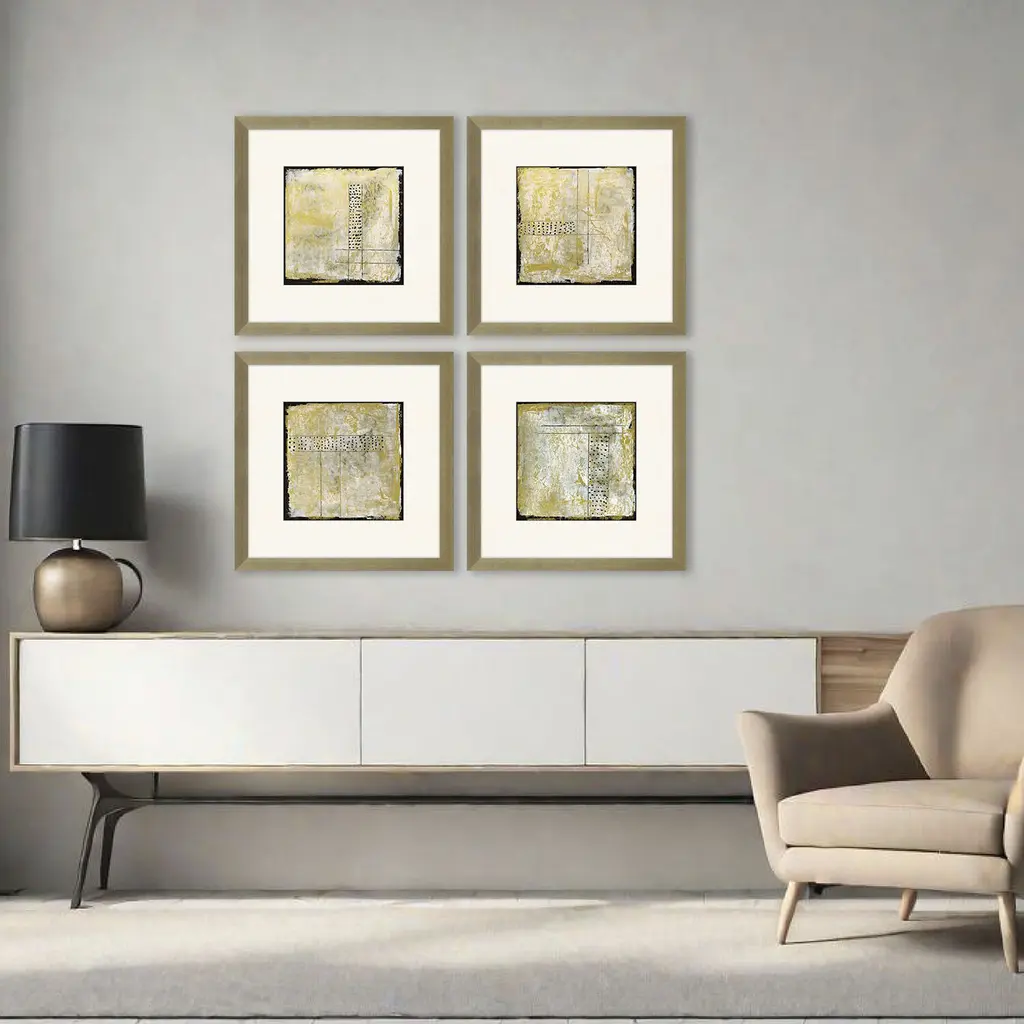 Abstract White And Black And Metallic And Neutral Framed Art, The Studio