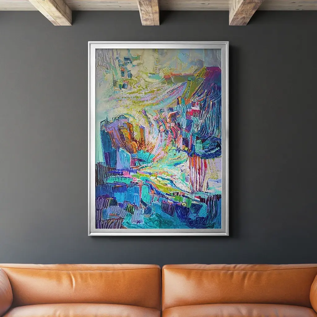 Abstracted Pastel Landscape Red Green Blue11x14