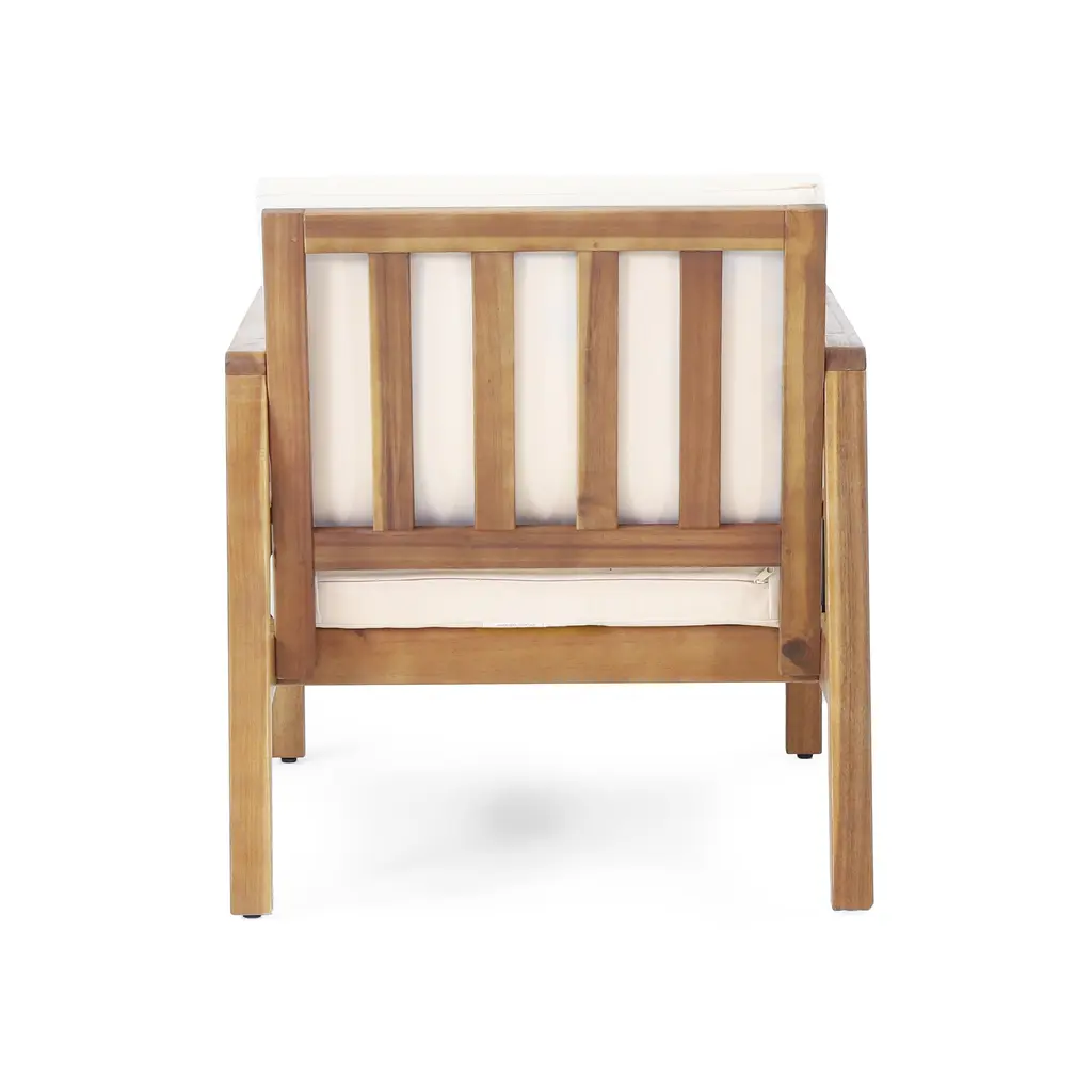 Acacia Wood Outdoor Club Chair Set With Soft Cushions - Teak+ Beige