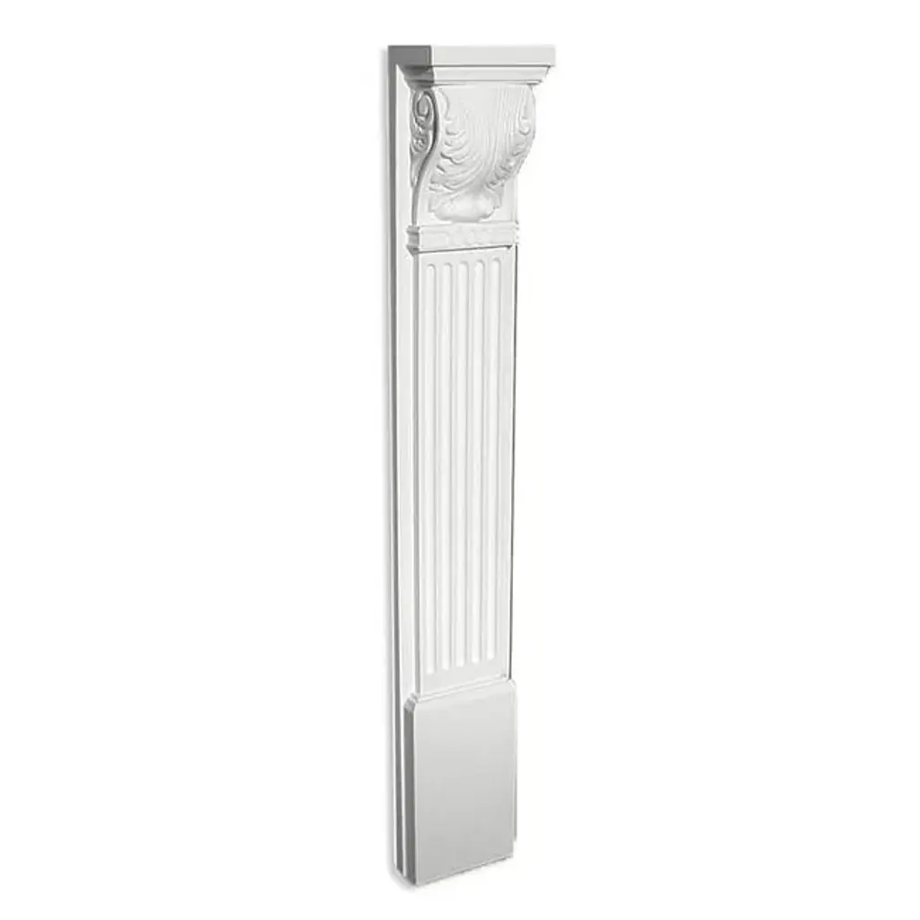 Add a touch of elegance to your home décor with this Acanthus Scroll Pilaster Corbel. It is a versatile piece that can be used in various settings such as fireplace mantels, counter overhangs, stair rails, and center islands. This pre-primed white corbel is easy to paint and is made of a hard-condensed polyurethane compound that lasts longer than MDF or wood. It is lightweight, semi-flexible, and safe for both indoor and outdoor use. Plus, it won't splinter, rot or mold, ensuring durability and longevity.Features:
