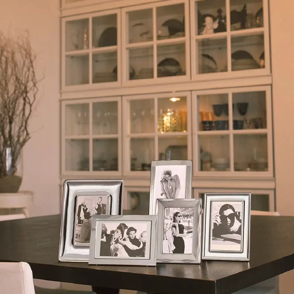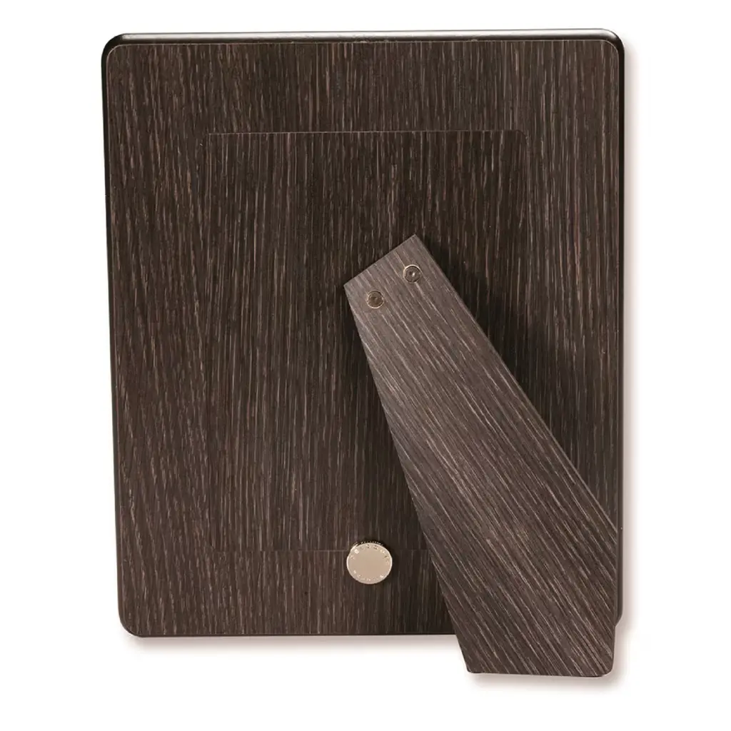 This luminous sterling silver 925 frame will be the timelessly elegant guardian of precious memories, accenting them with refined opulence. Solid wenge was chosen for the back elements, establishing a neat conflict of textures and materials compared to the dainty lines chiseled onto the frame, only interrupted by plain squares in correspondence of the corners. It fits 9x13cm size photos but is available to fit different sizes (6X9 and 10x15). Please ask the Concierge for options and pricing.