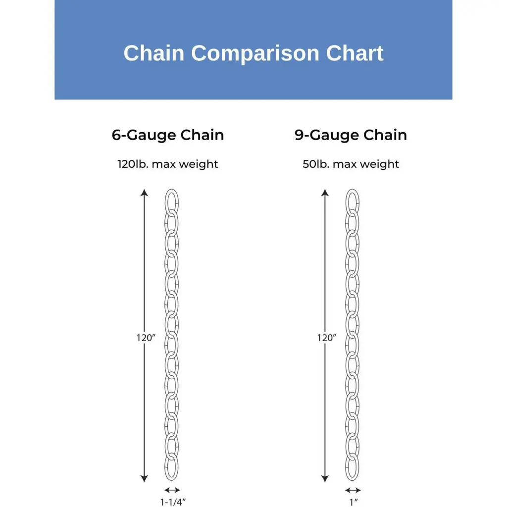 Ten feet of 9 gauge chain in Antique Nickel finish. Solid chain permits installation of chain-hung fixtures on high ceilings. Maximum fixture weight 50 lbs.