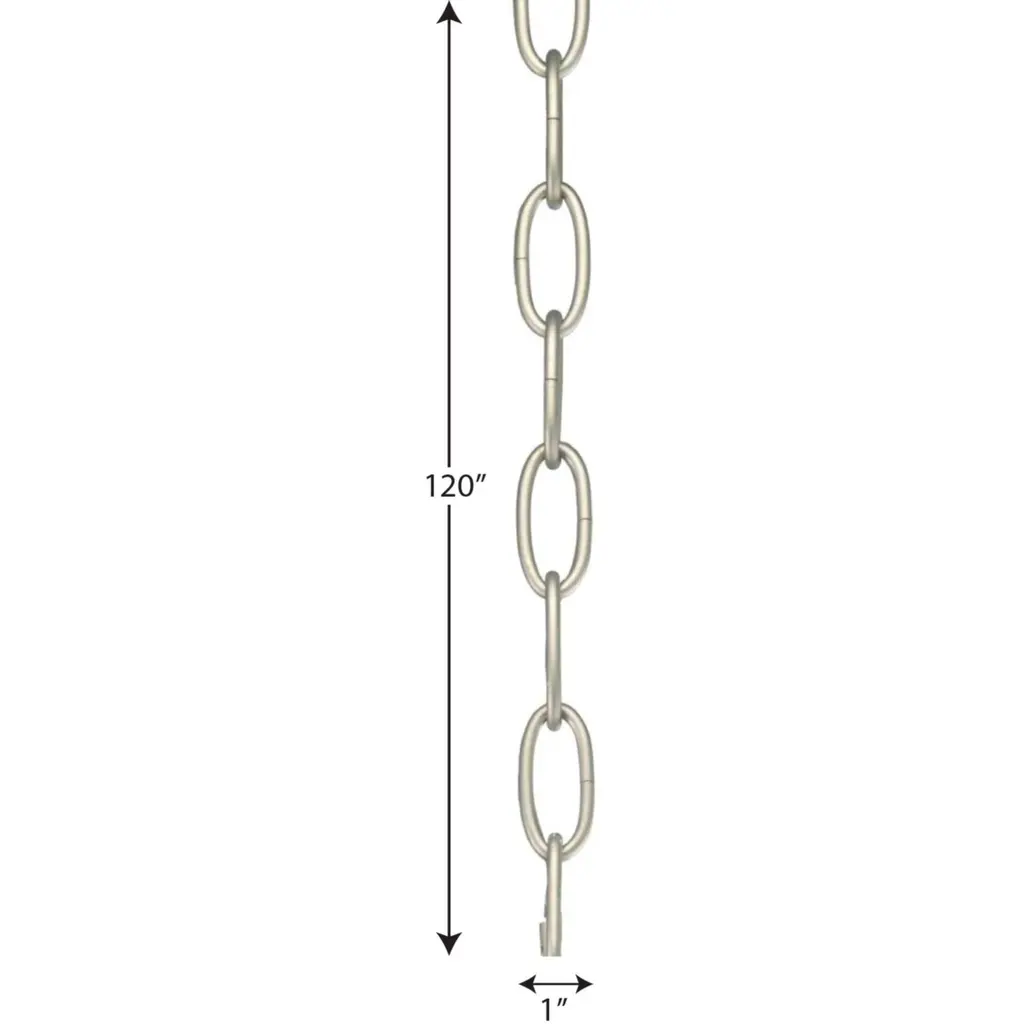 Ten feet of 9 gauge chain in Burnished silver finish. Solid chain permits installation of chain-hung fixtures on high ceilings. Maximum fixture weight 50 lbs.