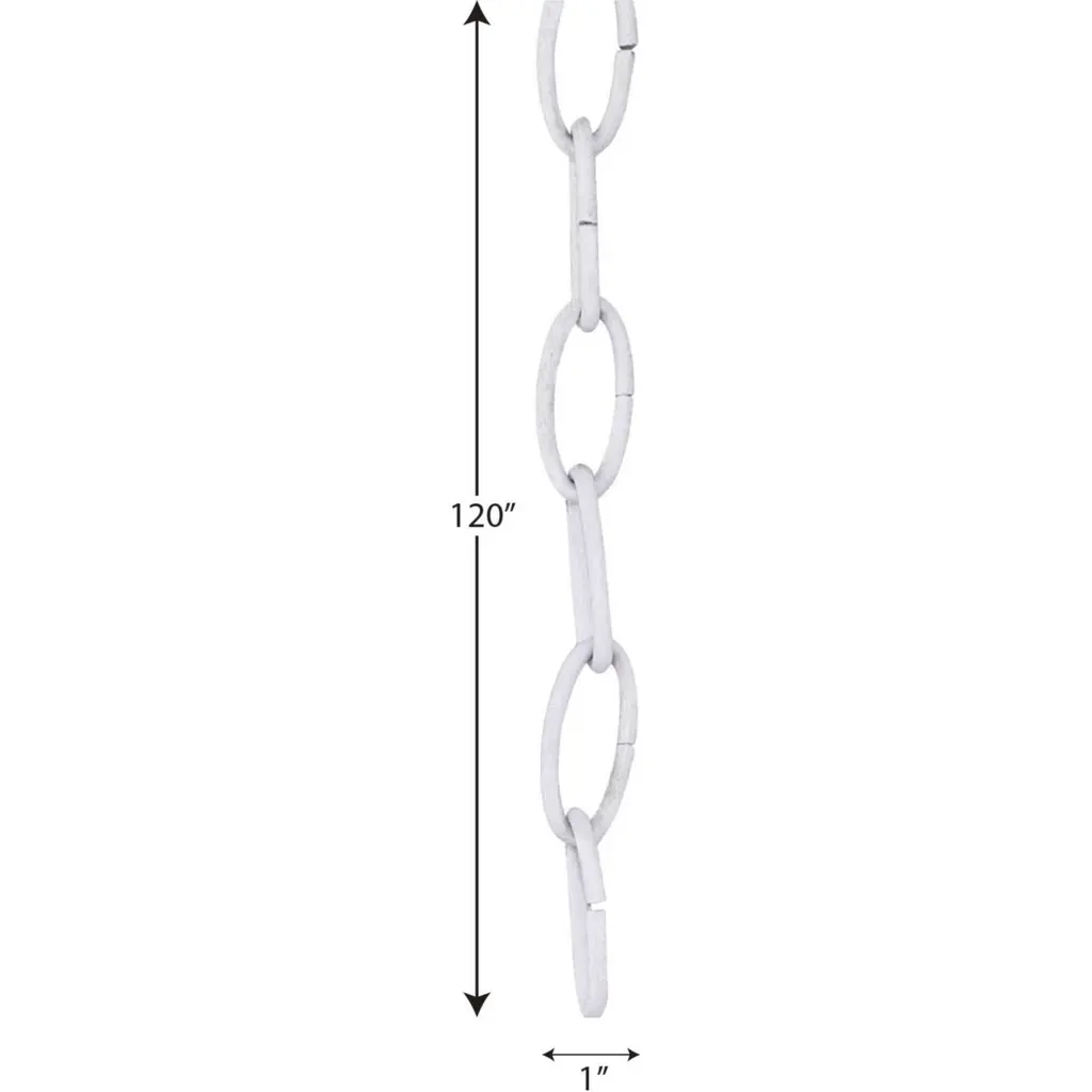 Ten feet of 9 gauge chain in Cottage White finish. Solid chain permits installation of chain-hung fixtures on high ceilings. Maximum fixture weight 50 lbs.