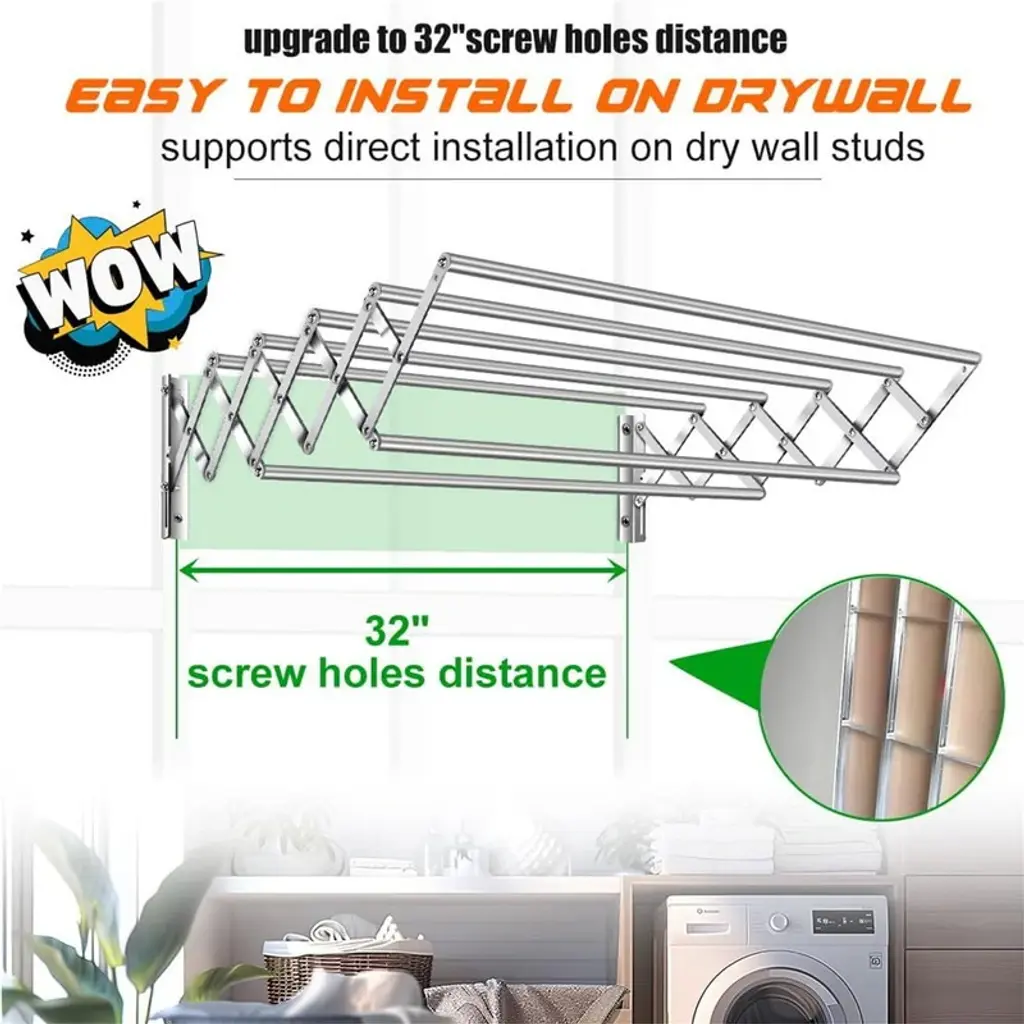 Accordion Wall Mounted Drying Rack - 250 Lbs Capacity - 34" Extra Large