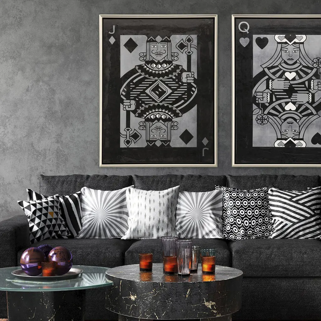 A winning hand Our playing card series features a hand applied enhanced gel finish. Canvas is mounted in a warm silver floater frame.