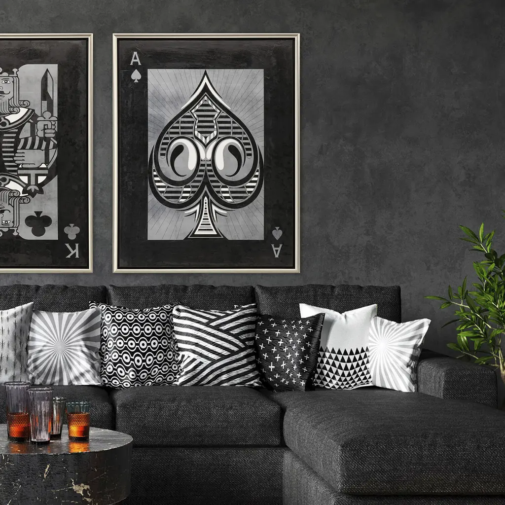 A winning hand Our playing card series features a hand applied enhanced gel finish. Canvas is mounted in a warm silver floater frame.