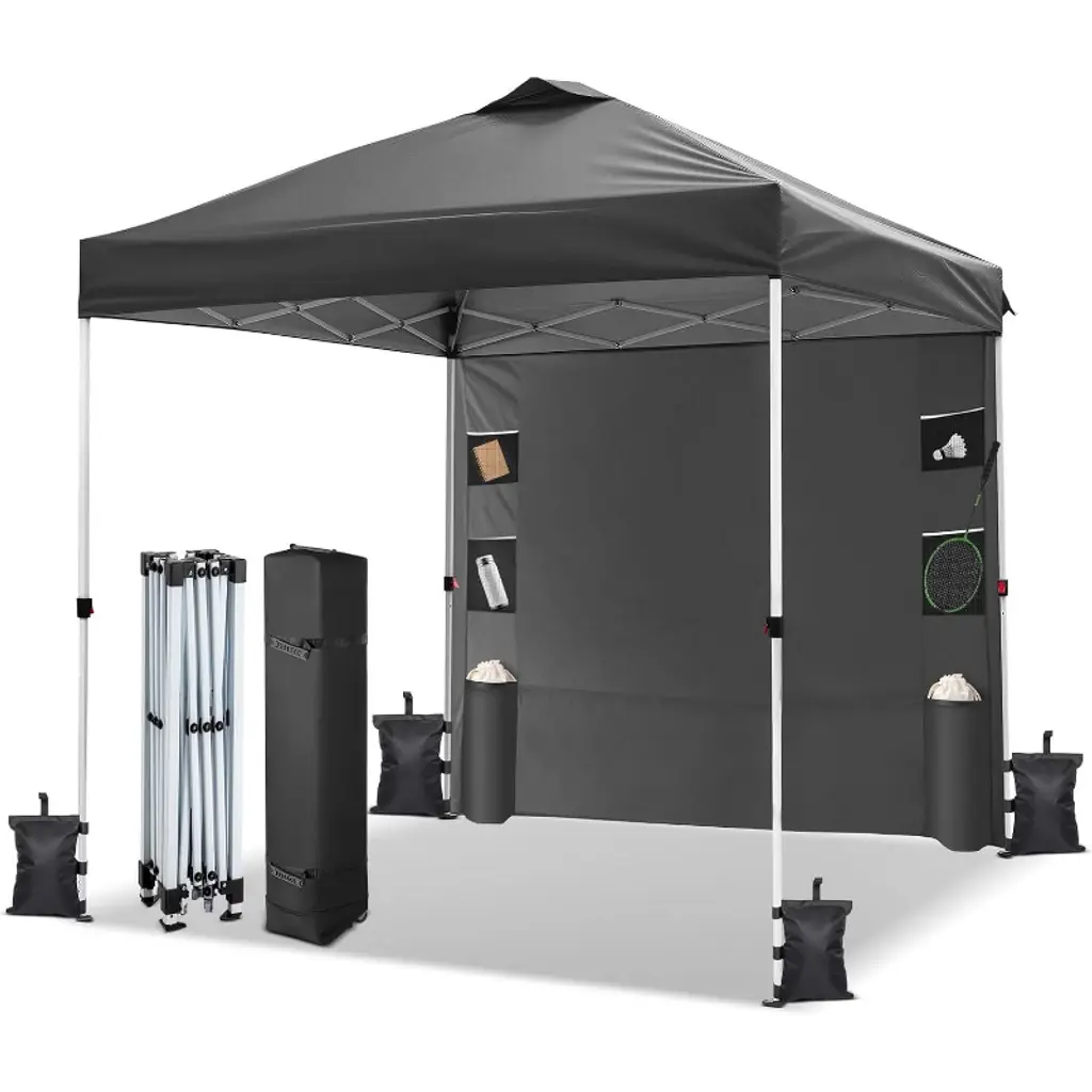 Acekool 10x10 Pop Up Canopy Tent, Commercial Instant Outdoor Shelter With Wheeled Bag & Sandbags, Sun Shade For Camping, Beach, Parties, Black