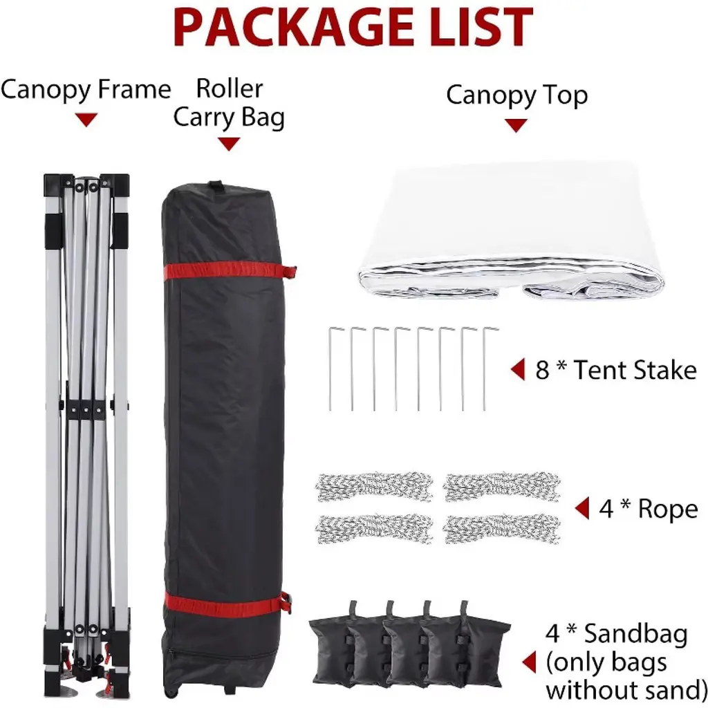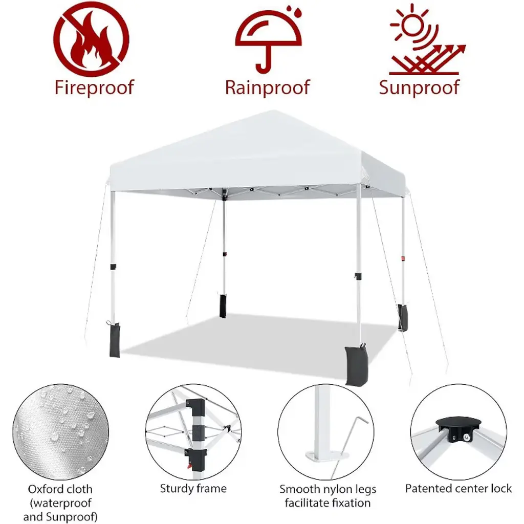 Acekool 10x10 Pop Up Canopy Tent, One-person Setup Instant Shelter, Adjustable Heights, Wheeled Bag, Sandbags & Stakes, Outdoor Shade, White
