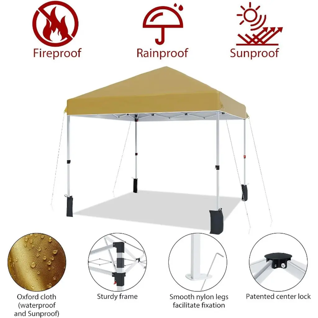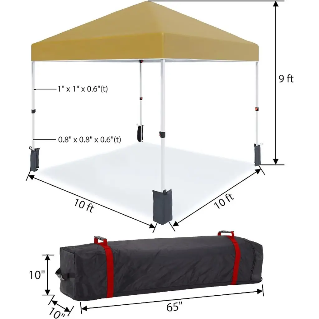 Acekool 10x10 Pop Up Canopy Tent, One-person Setup Instant Shelter, Adjustable Heights, Wheeled Bag, Sandbags & Stakes, Outdoor Shade, Yellow