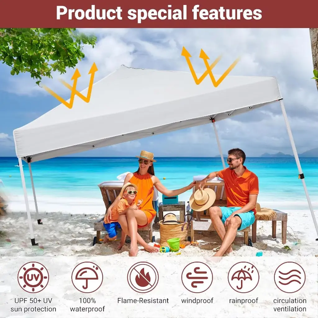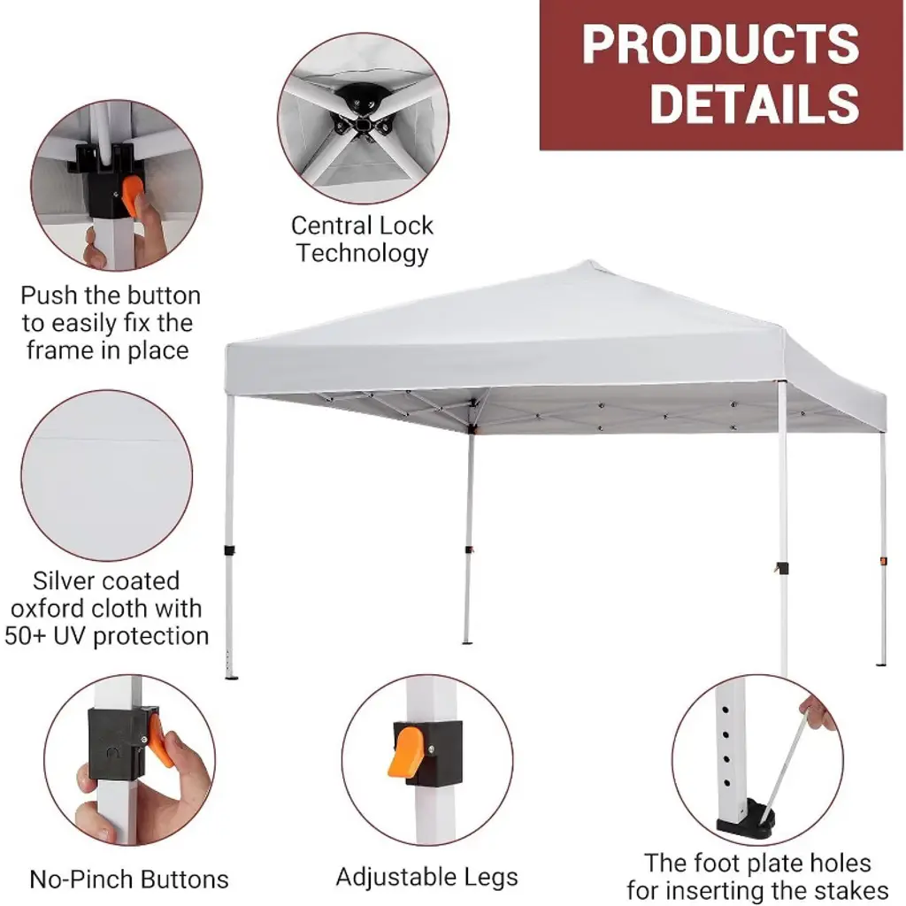 Acekool 10x10 Pop Up Canopy, Waterproof Beach Tent With One Push Setup, Uv Sun Shelter, Wheeled Bag, 3 Heights For Outdoor, Party, White