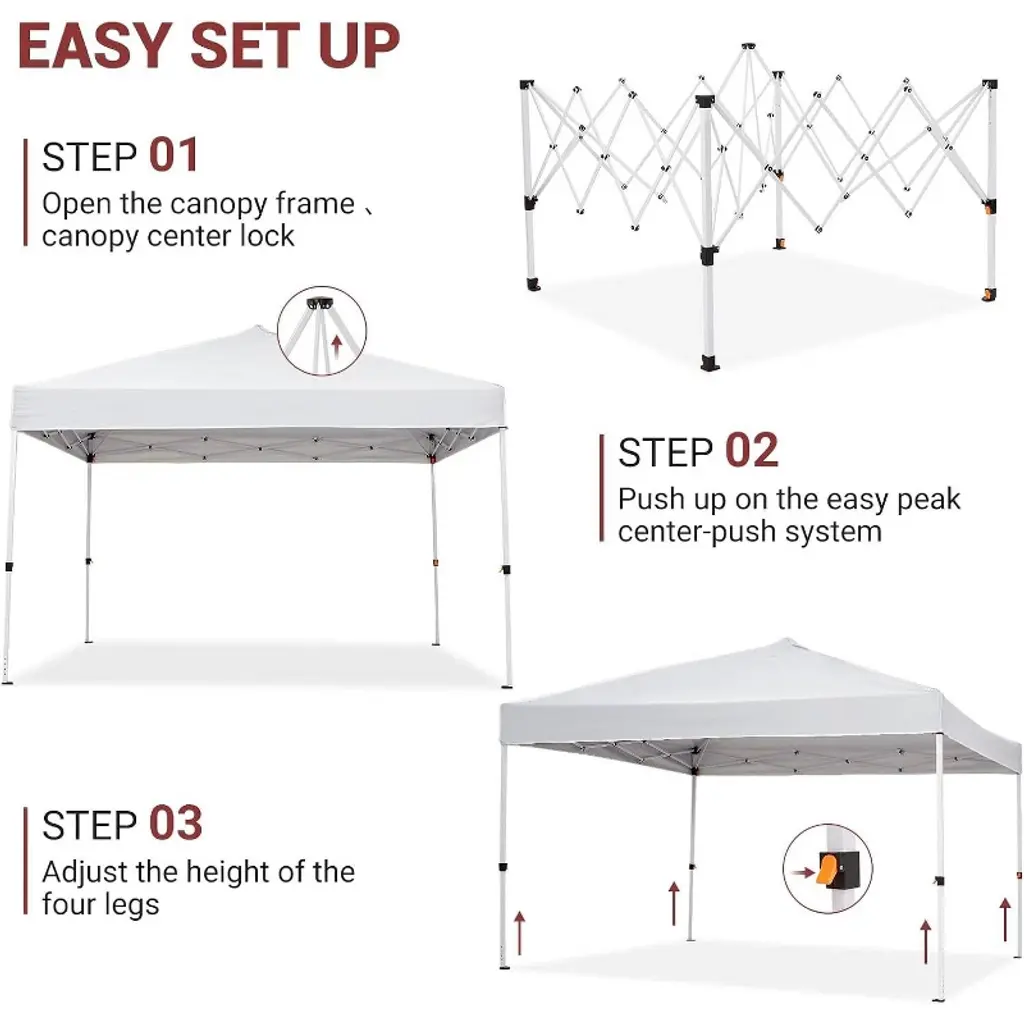 The Acekool 8x8 Pop Up Canopy offers quick shade and shelter wherever you need it. With a single push, the center-lock system lets you set up or take down the tent in seconds—no tools or complicated steps required. This canopy creates 64 square feet of coverage, providing a spacious, shaded spot for beach days, camping, outdoor parties, or craft markets. Protection from both sun and rain is built in. The waterproof canopy top blocks harmful rays with UPF 50+ UV coverage, and side vents encourage airflow and help prevent pooling during rainy weather. Adjust height easily to one of three levels with safe, soft-release buttons to get the right fit for any event. A lightweight steel frame and wheeled carry bag make transport simple, whether you’re heading to the park, beach, or a festival. Built-in wheels on the legs allow you to reposition the canopy easily, even after setup. The reinforced steel construction withstands daily outdoor use, supporting up to 120 pounds and keeping your shelter stable.