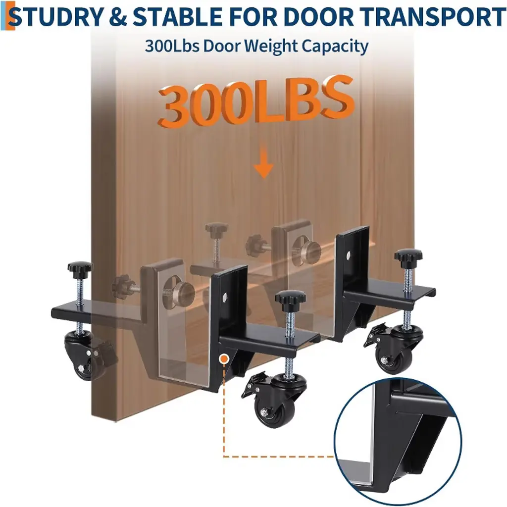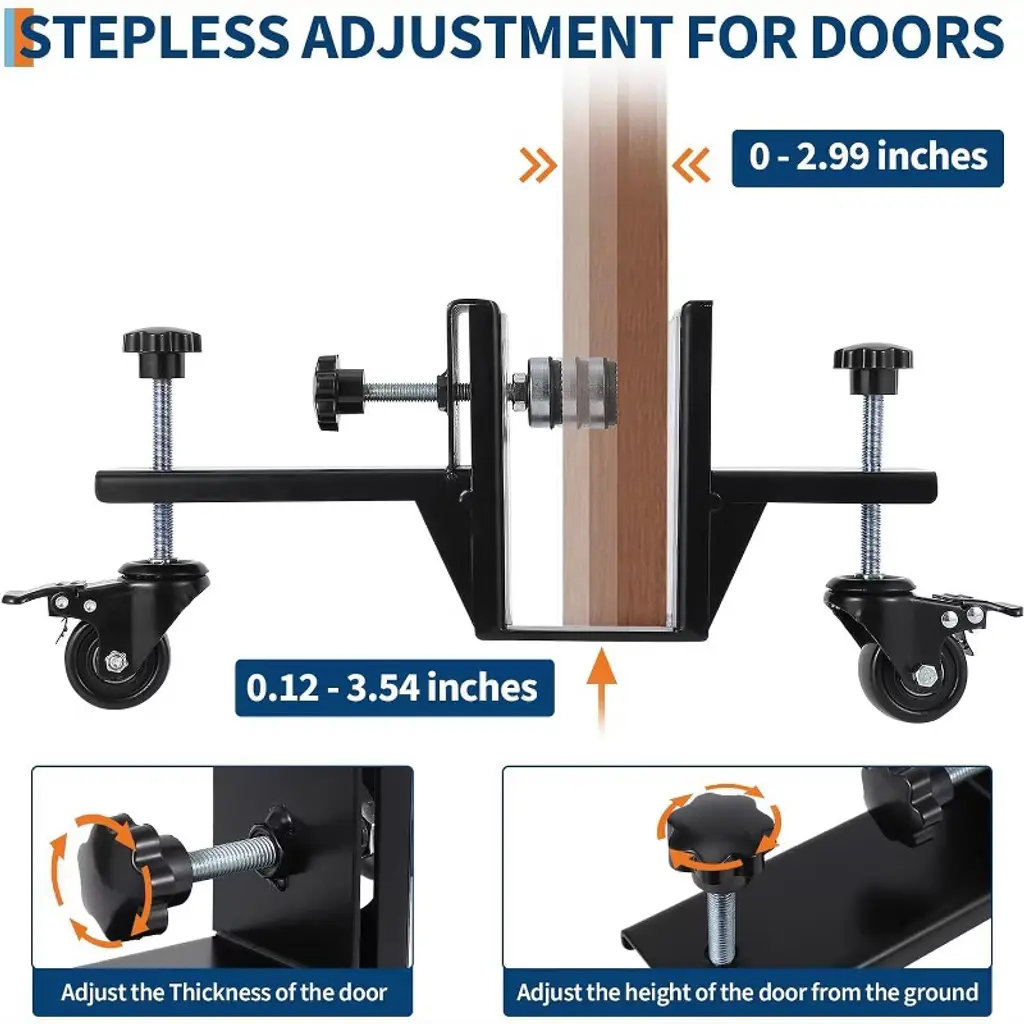 Acekool 2 Piece Door Installation Kit, 300 Lbs Capacity Door Dolly, 0-2.99" Adjustable, 360° Wheels & Brakes, One-person Use, Black