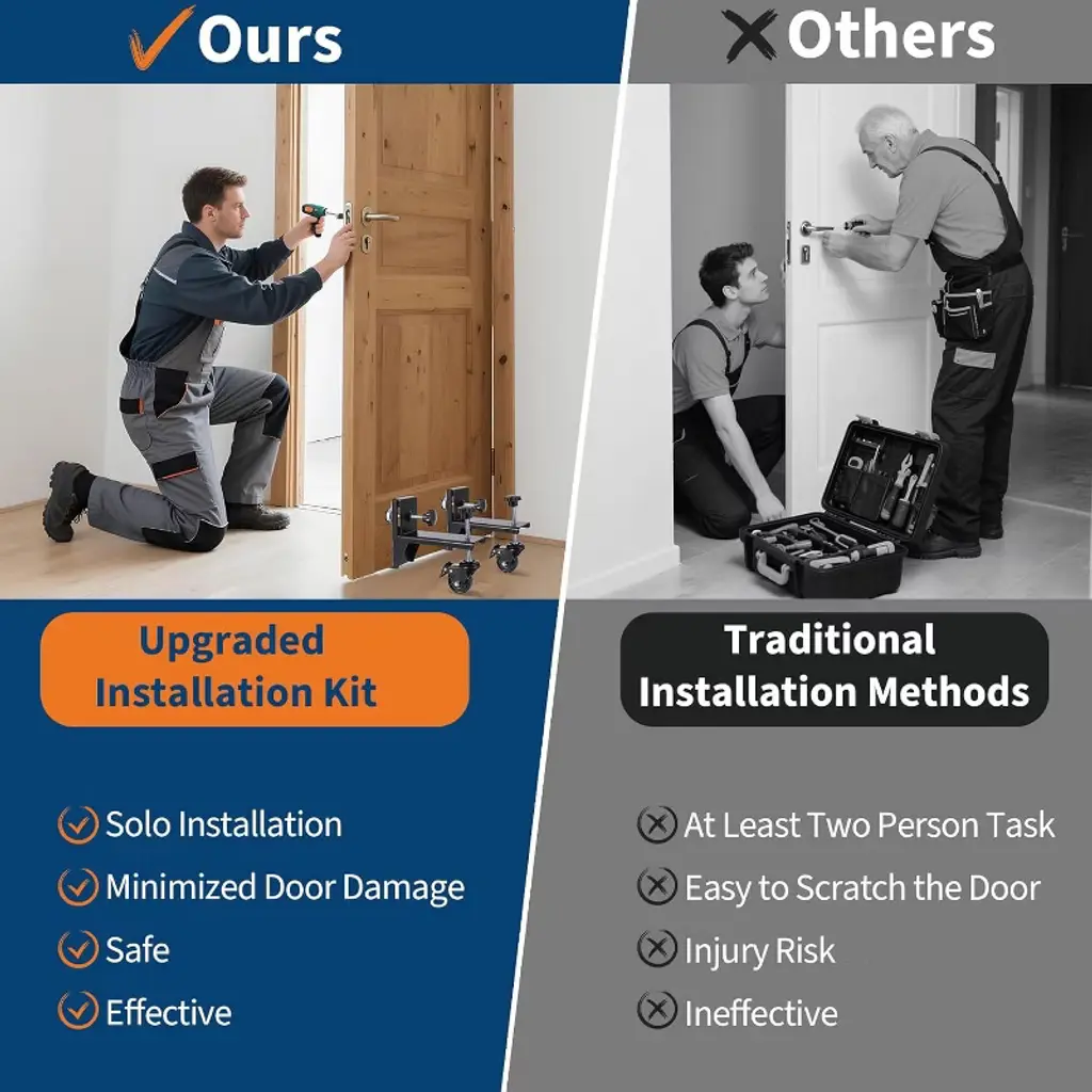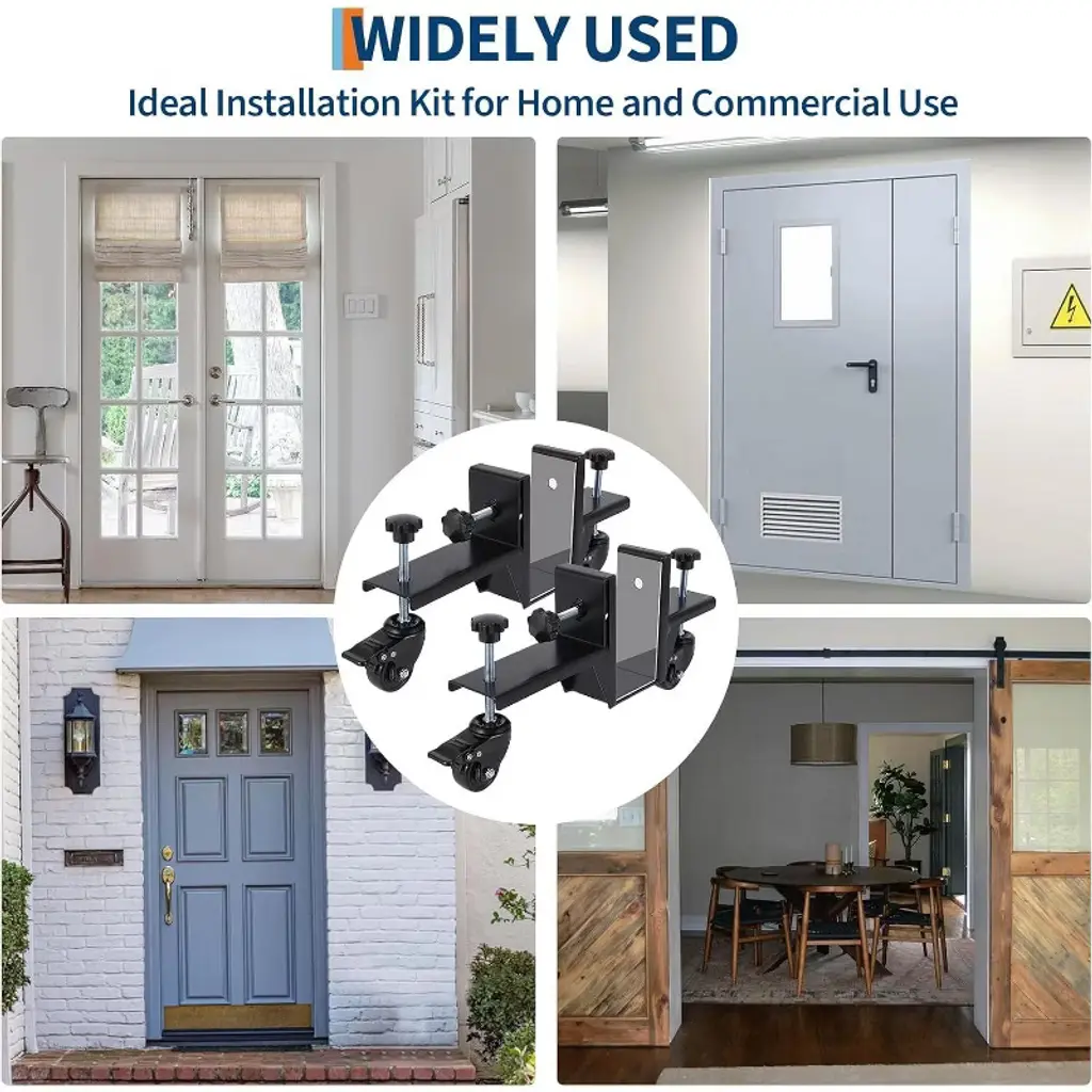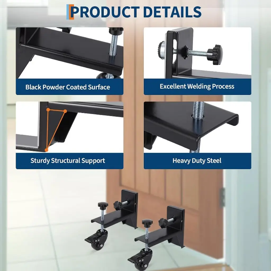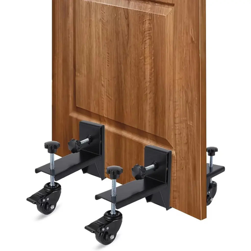 The Acekool 2 Piece Door Installation Kit is designed to allow one person to move, lift, and install doors quickly and safely. Each dolly handles up to 300 lbs, supporting heavy pre-hung, slab, or entry doors with ease. The tough build and corrosion-resistant black finish make these dollies a reliable choice for both residential and commercial use. Adjustable clamps accommodate doors from 0 to 2.99 inches thick, providing flexibility for a wide range of installations. 360° rotating wheels ensure you can move doors in any direction, while built-in brakes let you fix the dolly securely during alignment or mounting. The design allows users to accomplish installations solo, freeing up extra hands and speeding up each job. Each dolly is compact and easy to maneuver, with an adjustable fit that makes it suitable for most doors encountered in home improvement or construction. Whether you’re a professional installer or a DIY homeowner, the Acekool Door Dolly Kit simplifies every door project by offering solid support, increased safety, and greater efficiency.