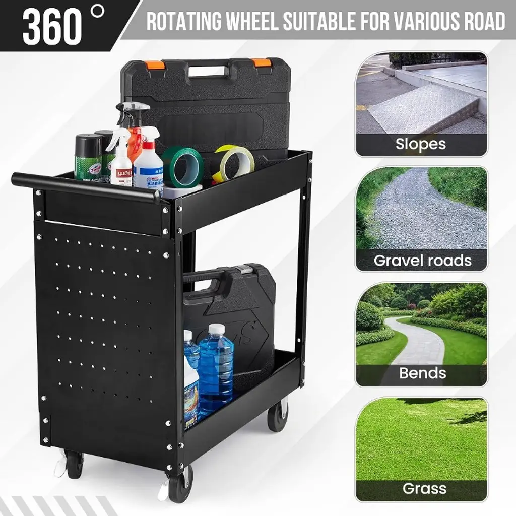 Acekool 2-tier Rolling Tool Cart With Pegboard, 400 Lbs Capacity Heavy Duty Utility Cart For Garage, Warehouse & Repair Shop,gray