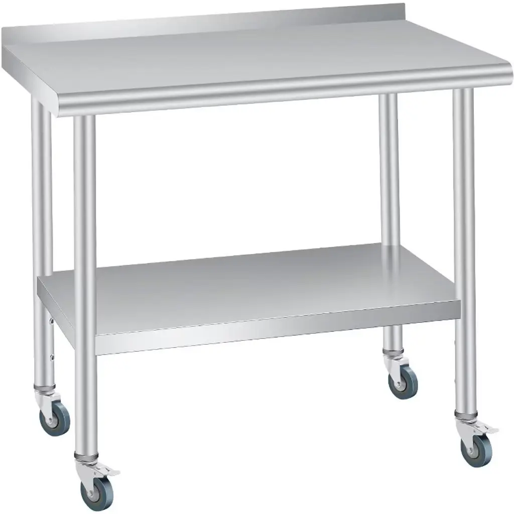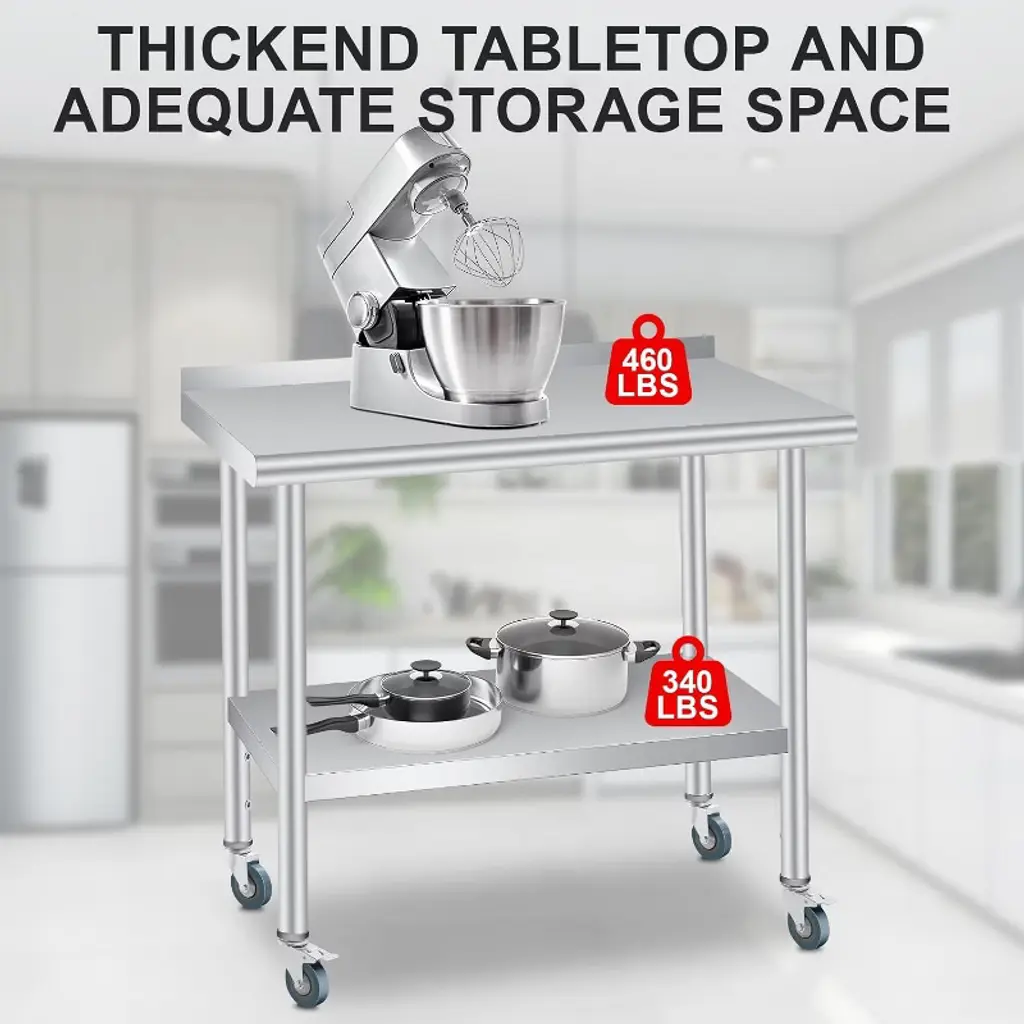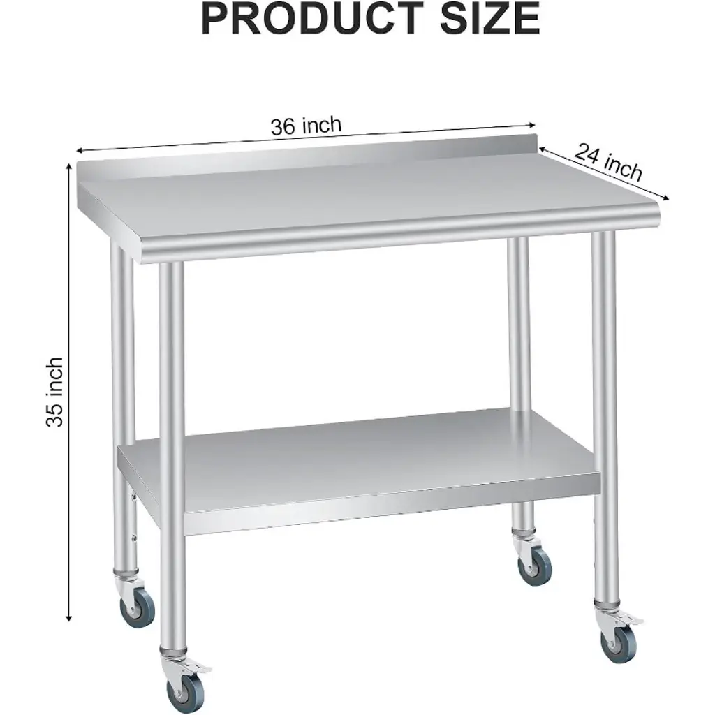 Acekool 36" X 24" Stainless Steel Prep Table With Backsplash, Adjustable Undershelf & 4 Caster Wheels, Commercial-grade Work Table