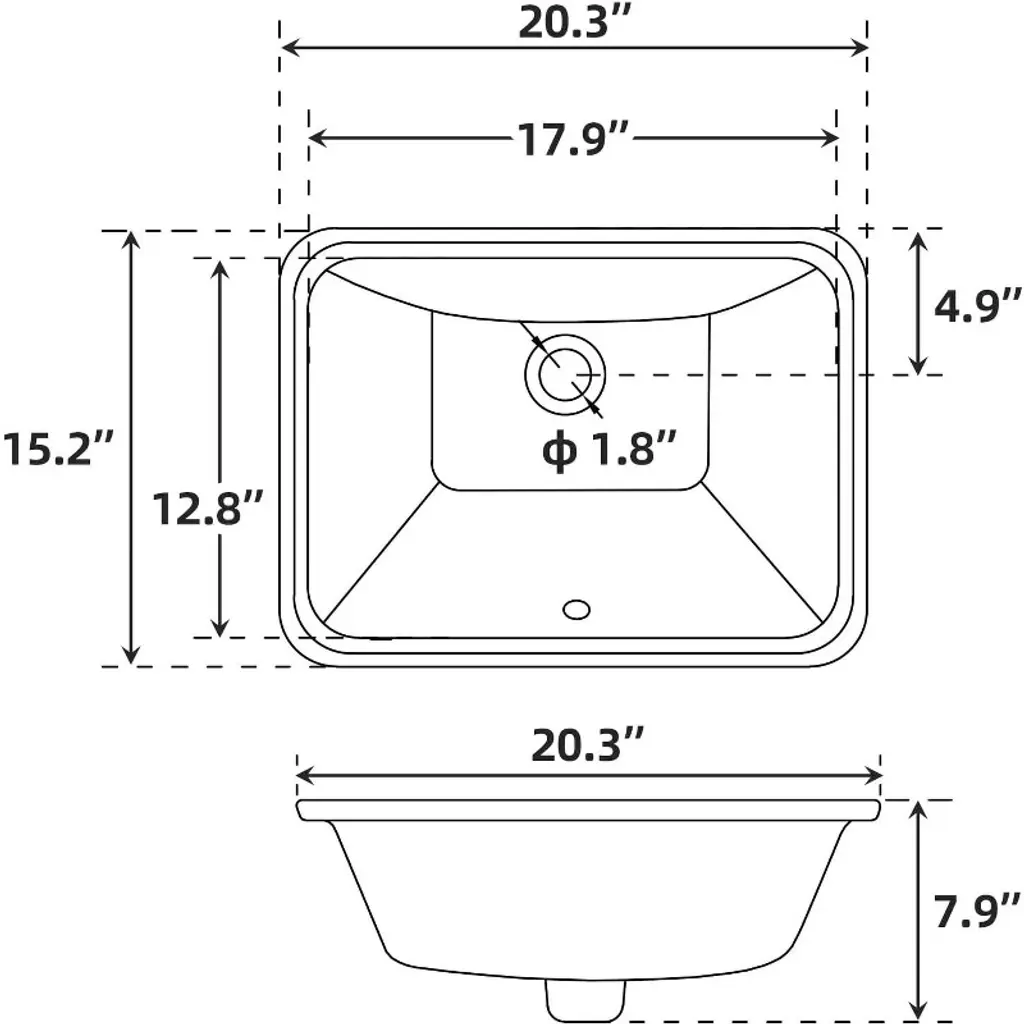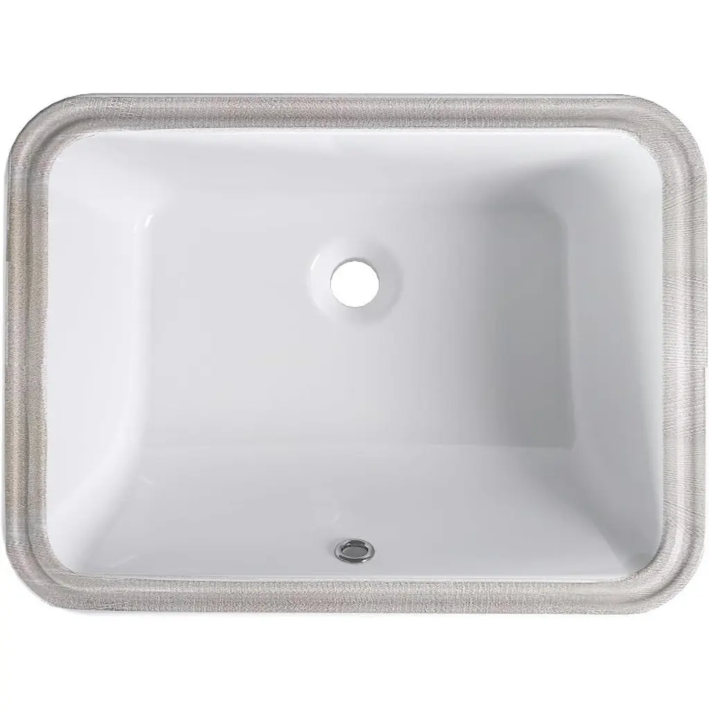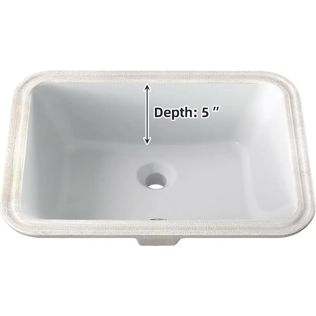 Acekool 5502 Undermount Ceramic Bathroom Sink, Glossy White, Rectangular, 20.28 X 15.16 X 7.87 In