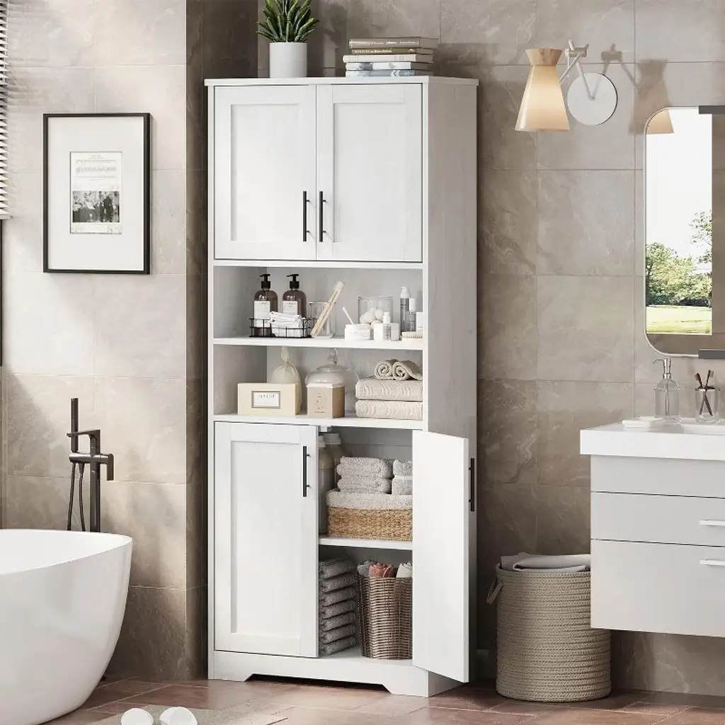 Acekool 67 Inch Tall Storage Cabinet With Adjustable Shelves, Modern Bathroom Linen Tower With Doors And Open Shelves, White