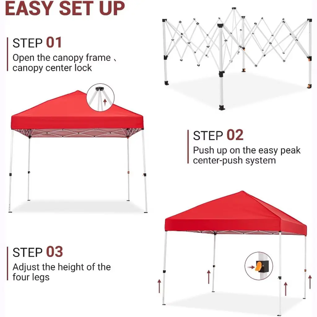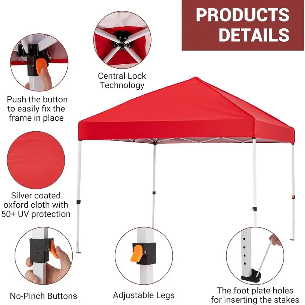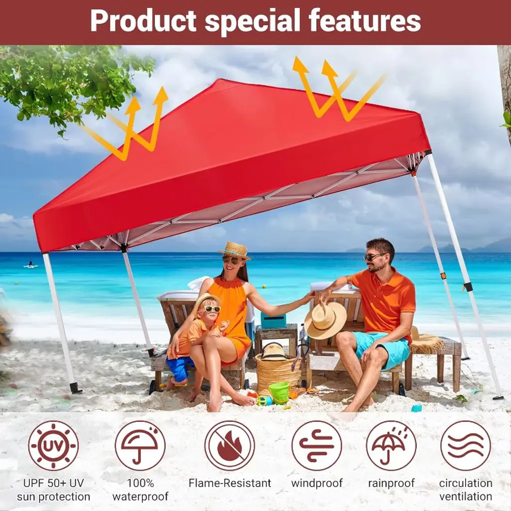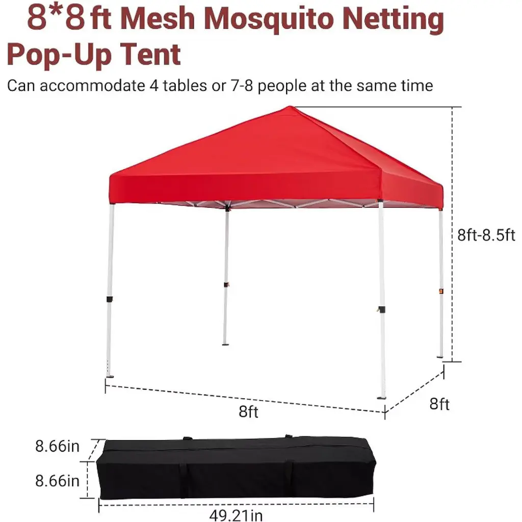 Acekool 8X8 Pop Up Canopy, Waterproof Beach Tent With One Push Setup, Uv Sun Shelter, Wheeled Bag, 3 Heights For Outdoor, Party, Red